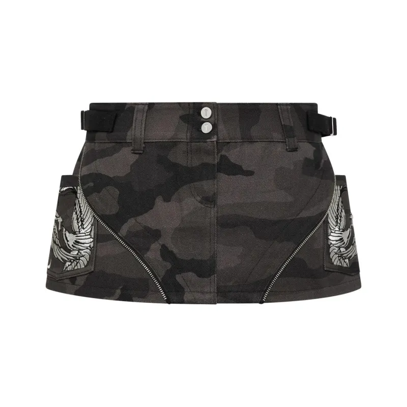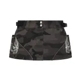 ED HARDY X Trapstar Collaboration FW24 Джинсовые короткие юбки Женские Камуфляж Черный