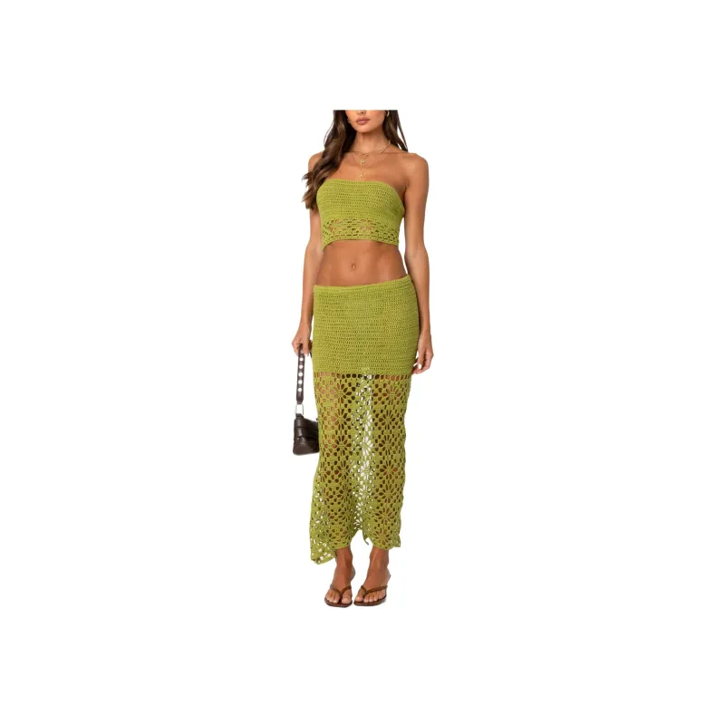Edikted Ida Спина Slit Crochet Maxi Юбка KNIT Длинный Юбка Женские