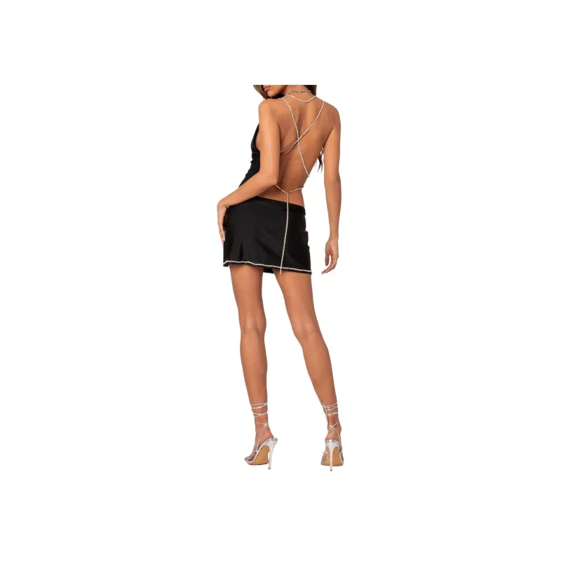Edikted Mariah Rhinestone Slitted Mini Skirt Casual Short Skirts Women's
