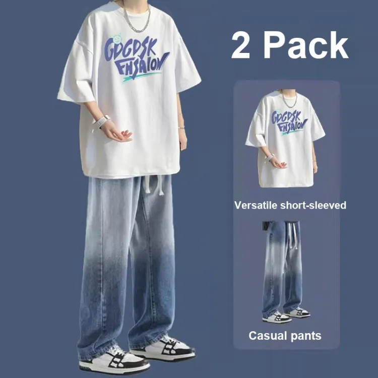 Комплект:Белая футболка + синие джинсы