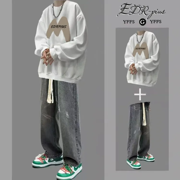Белый свитшот + черные и серые джинсы