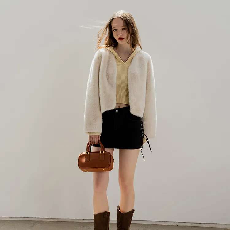 EGGKA Абрикос Женское короткое пальто