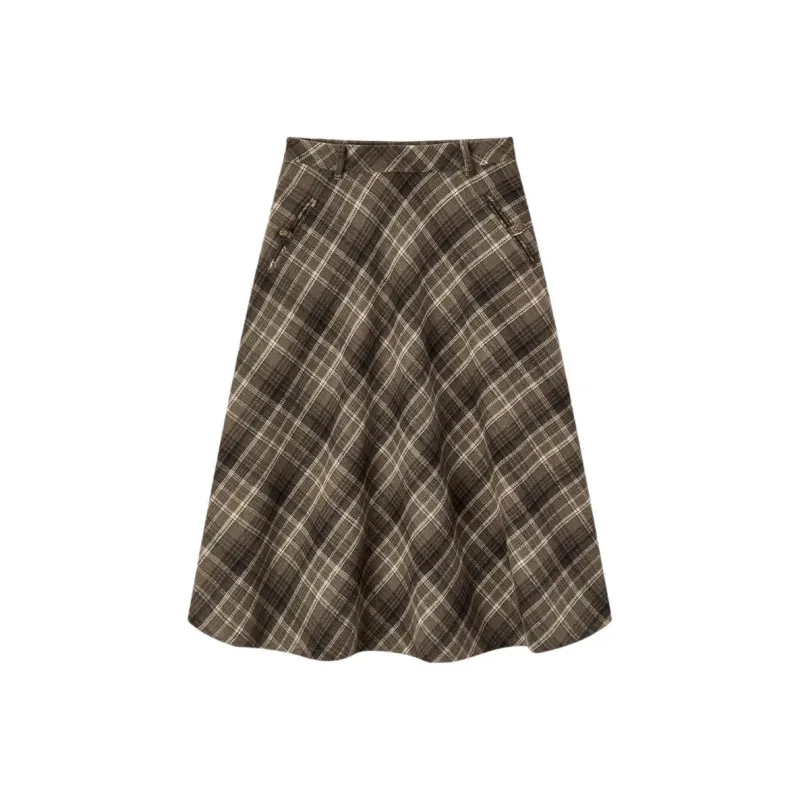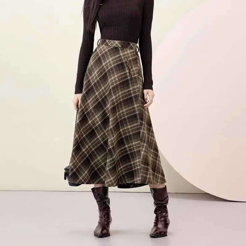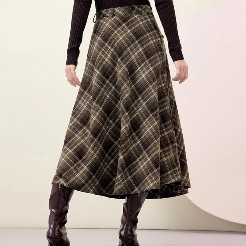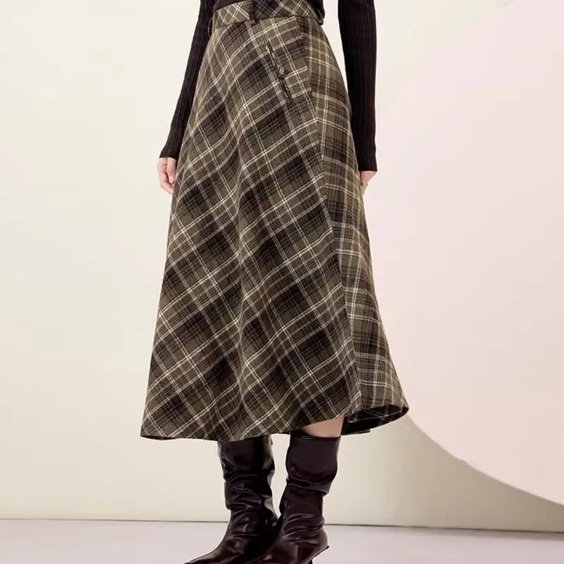 EICHITOO Повседневный Длинный Юбка Женская Темно-зеленый Клетка