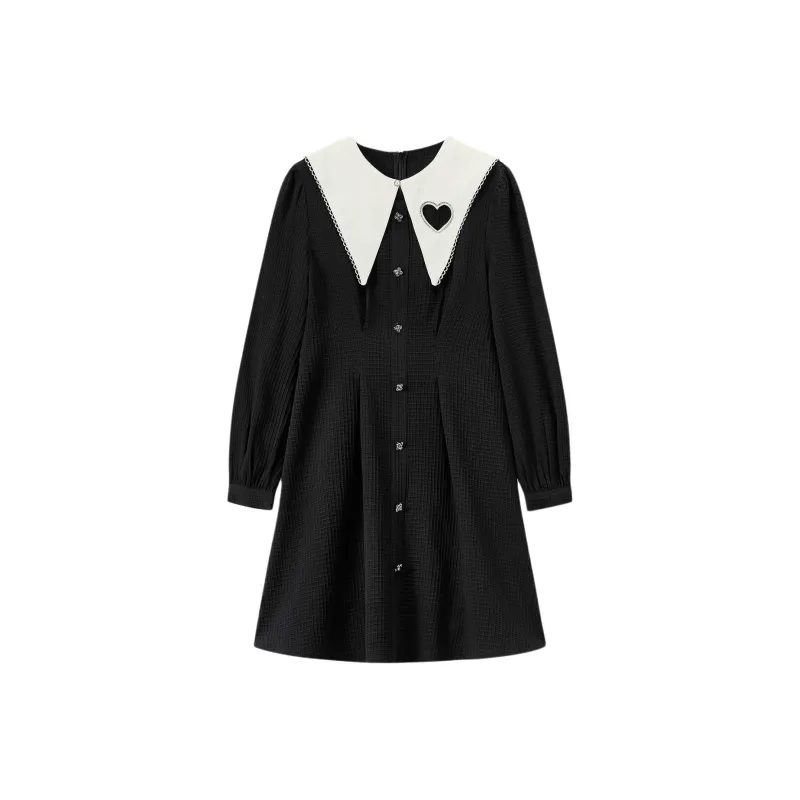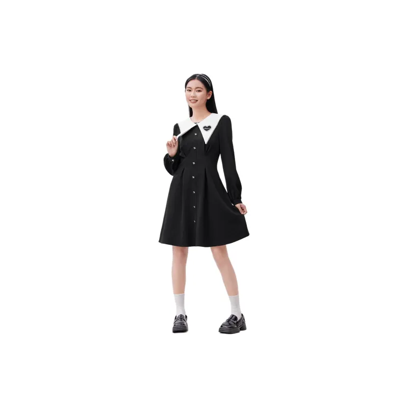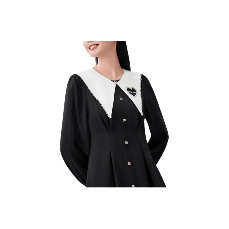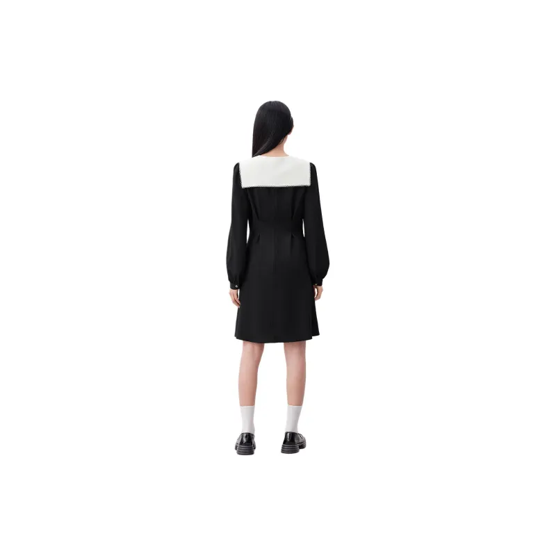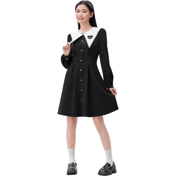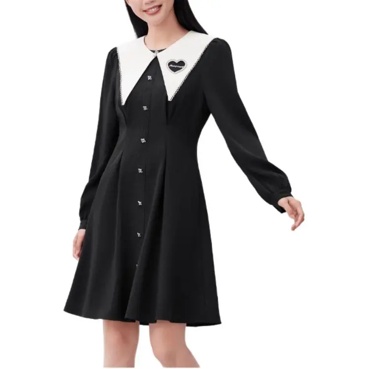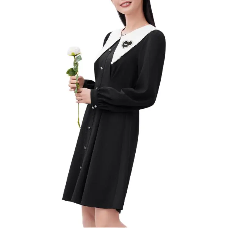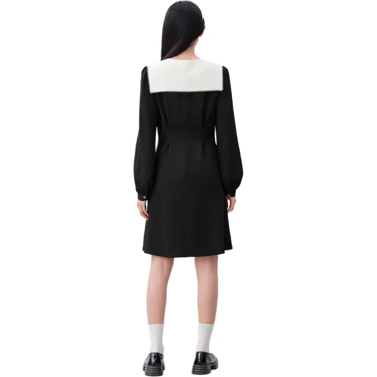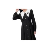EICHITOO Длинное платье с длинными рукавами женское черная отделка