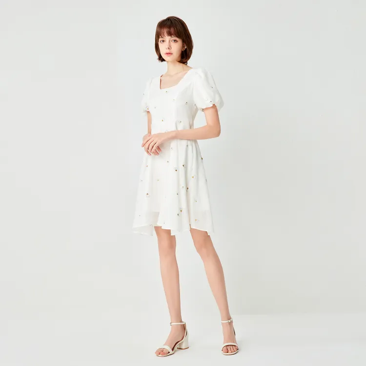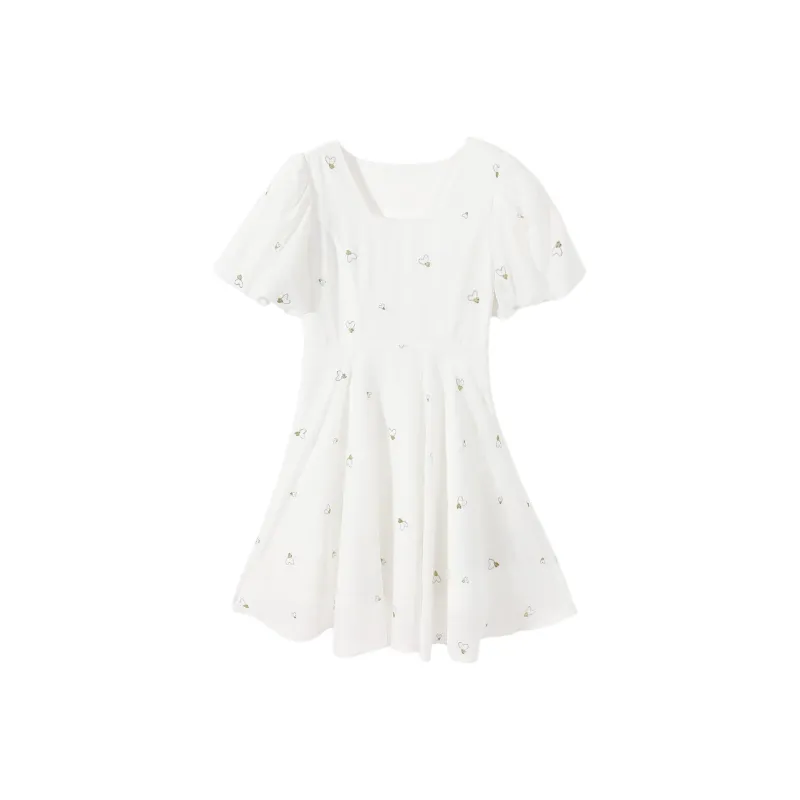 EICHITOO Короткий рукав Платье Женское Натуральный белый Узор