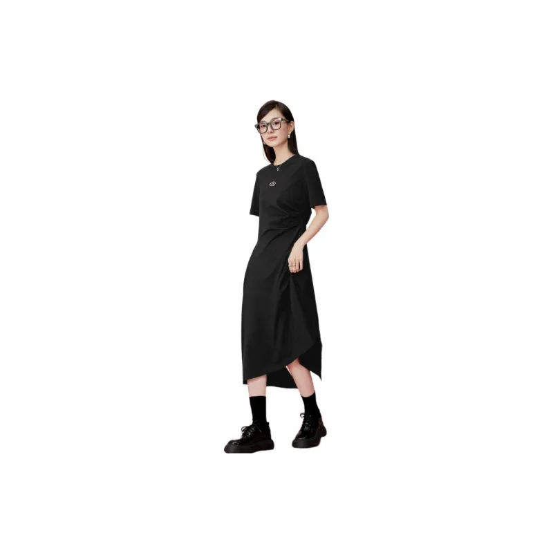 EICHITOO Короткое платье с короткими рукавами женское черное