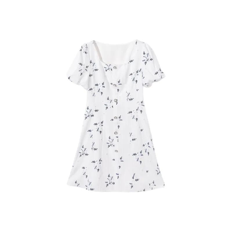 EICHITOO Короткий рукав платье женское натуральный белый цветочный