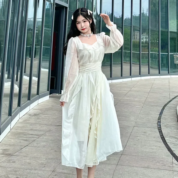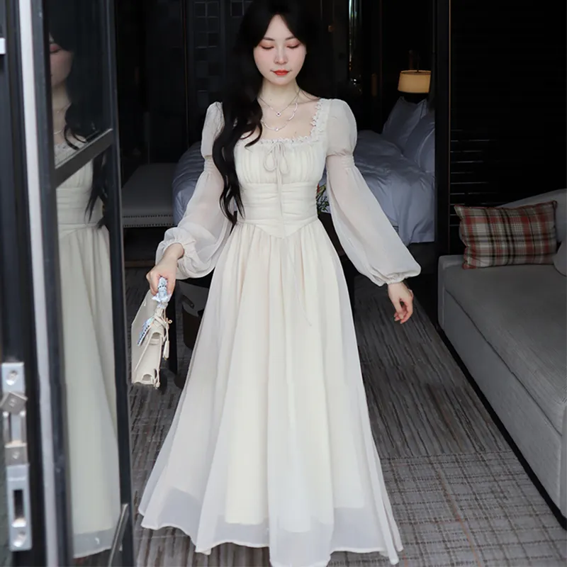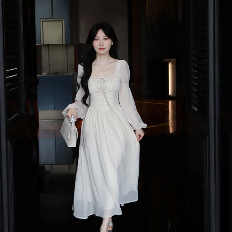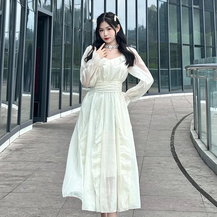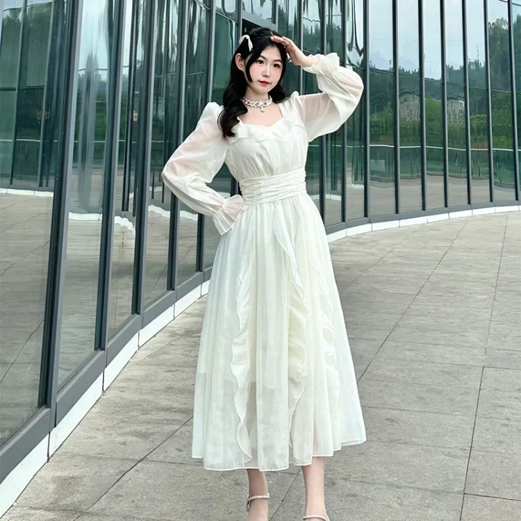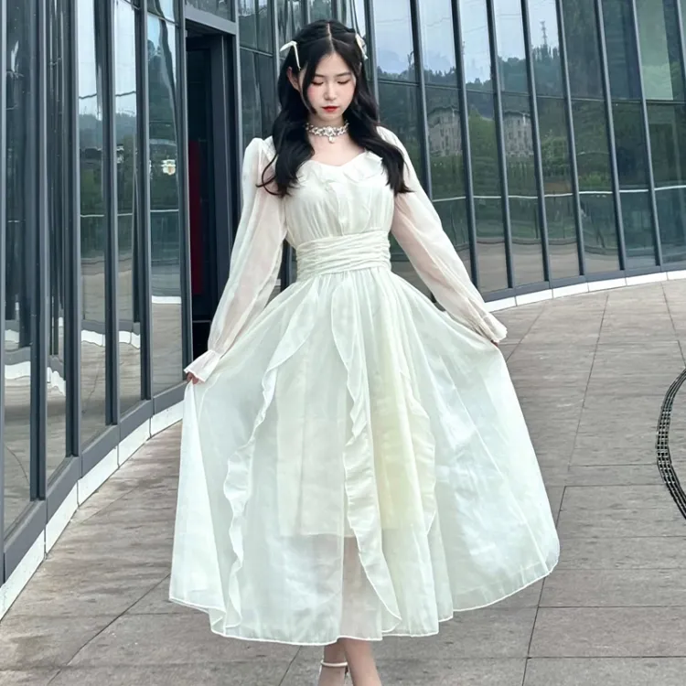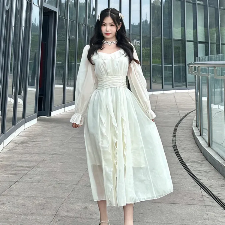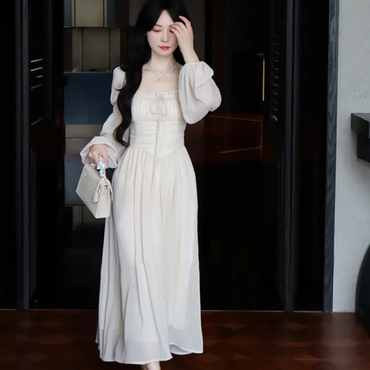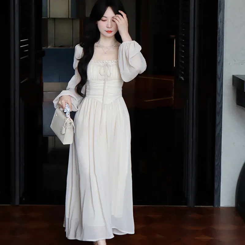 EIDOLON GRAIN Длинное платье с длинными рукавами женское цвет экрю