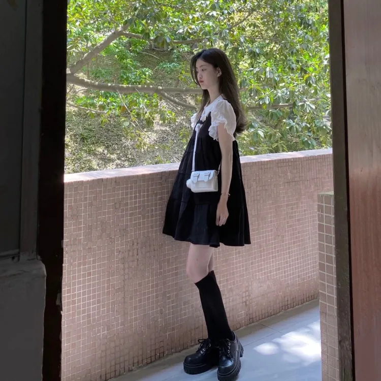 EIDOLON GRAIN Короткий рукав Платье Женское Черное