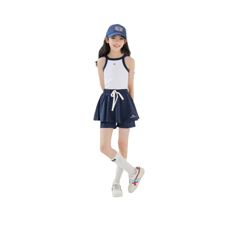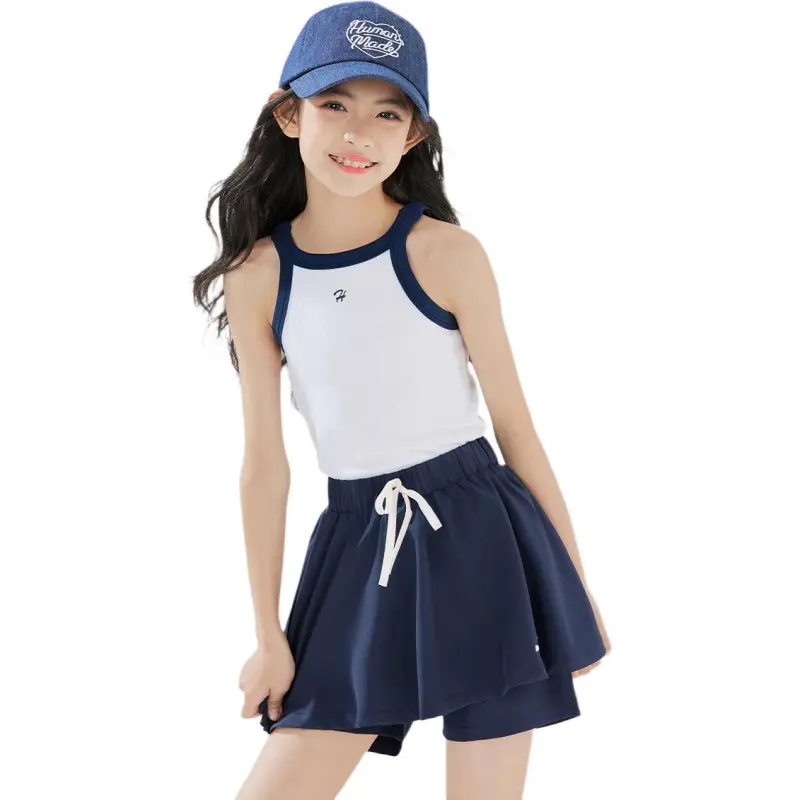 HANHANXIANG 19136 Белый + 18566 Темно-синий Школьный комплект с юбкой