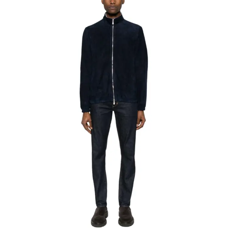 Eleventy FIRSTCLASS Made IN Italy SS24 Кожаная Куртка Мужская Темно-синяя