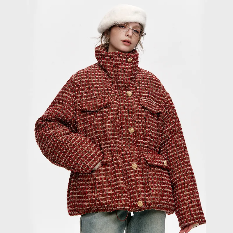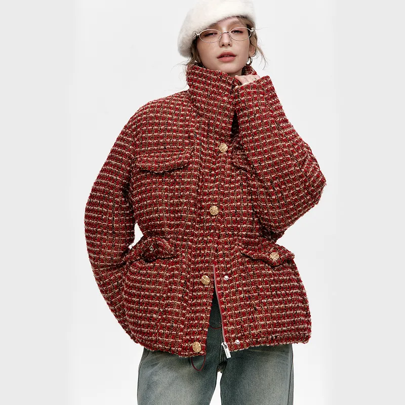 ELF SACK Пуховик Женский Красный Клетка