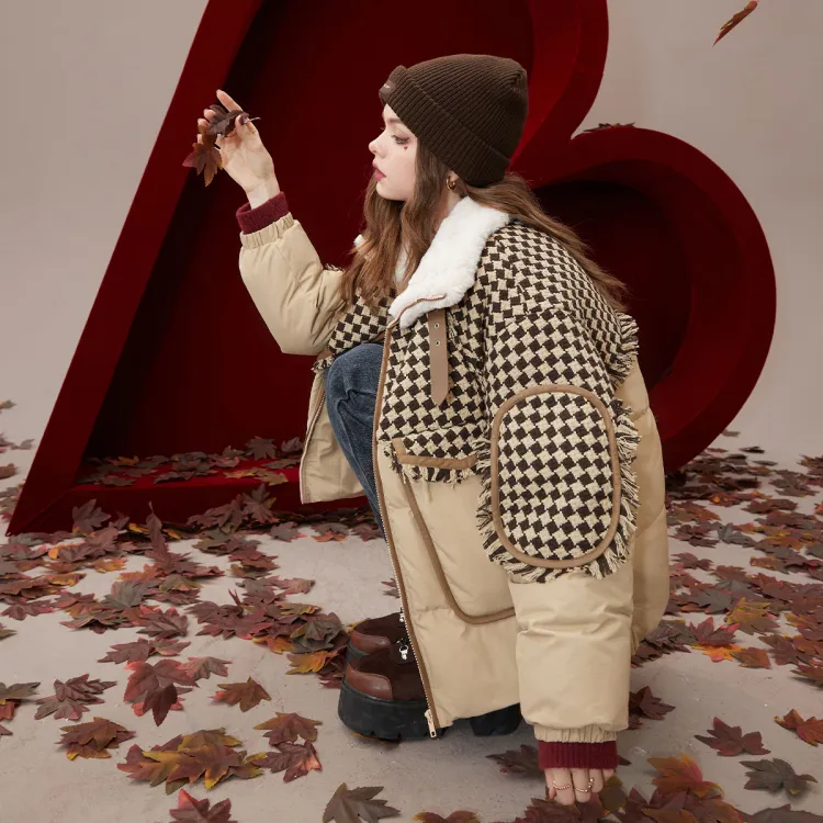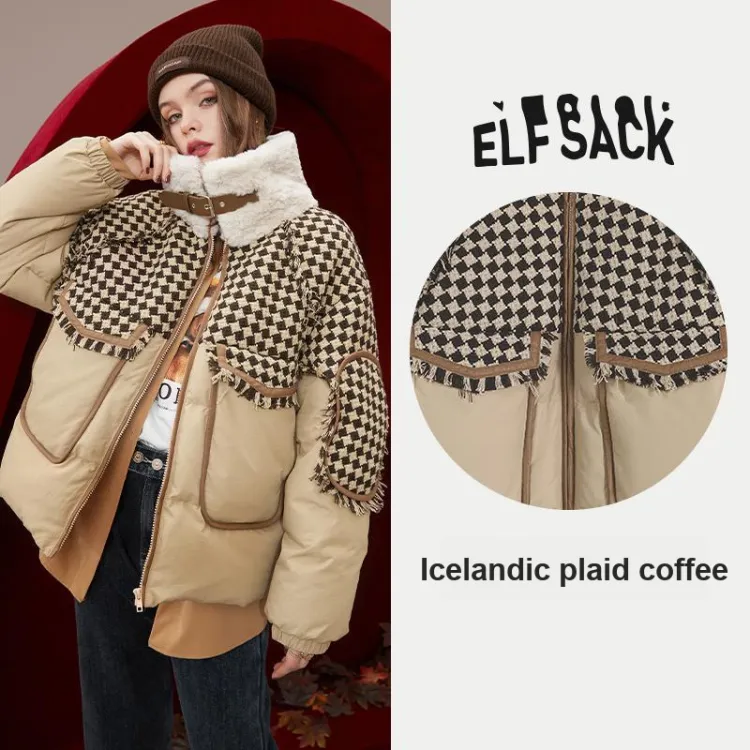 ELF SACK Icelandic Клетчатый Кофе Женские Пуховики