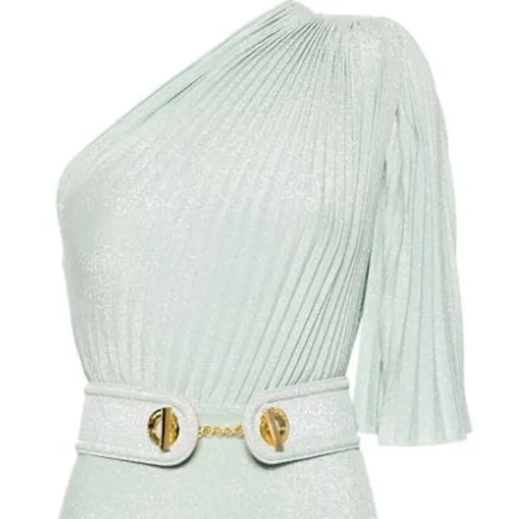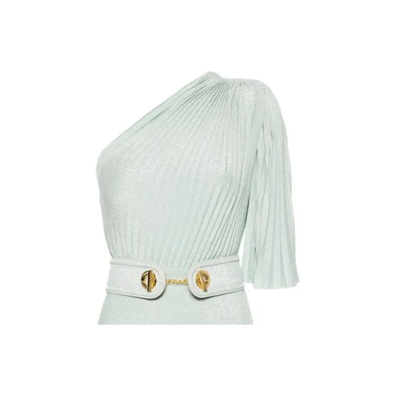 Elisabetta Franchi SS24 Короткое платье с короткими рукавами женское аква-зеленый