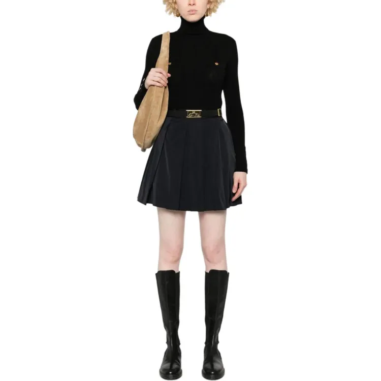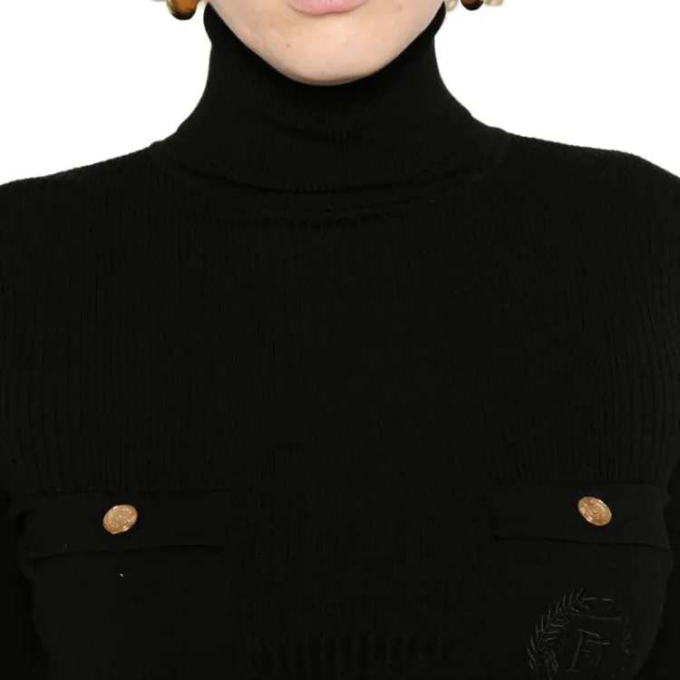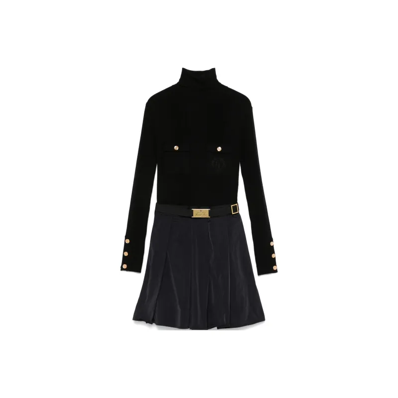 Elisabetta Franchi Длинное платье с длинными рукавами женское черное
