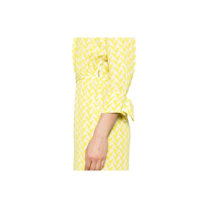 Elisabetta Franchi Длинное платье с длинными рукавами женское желтое