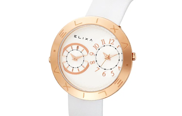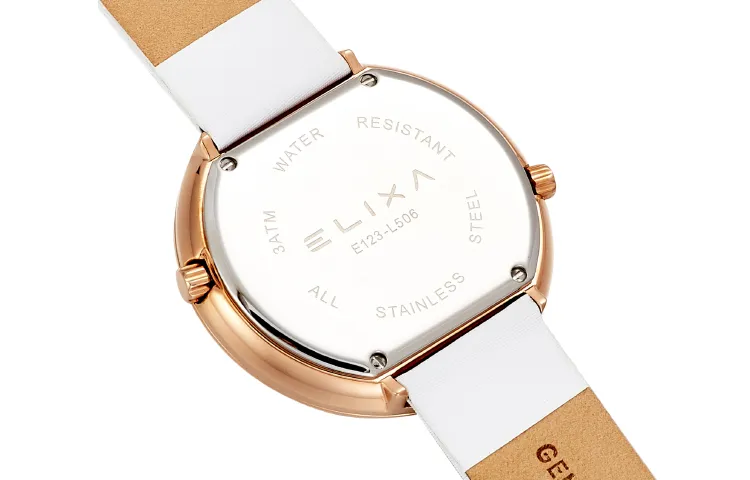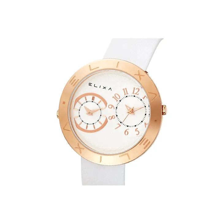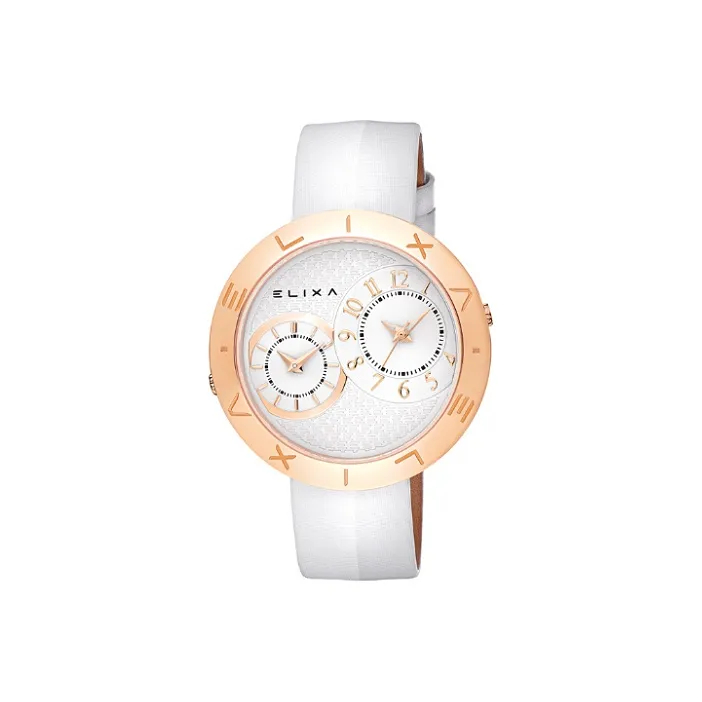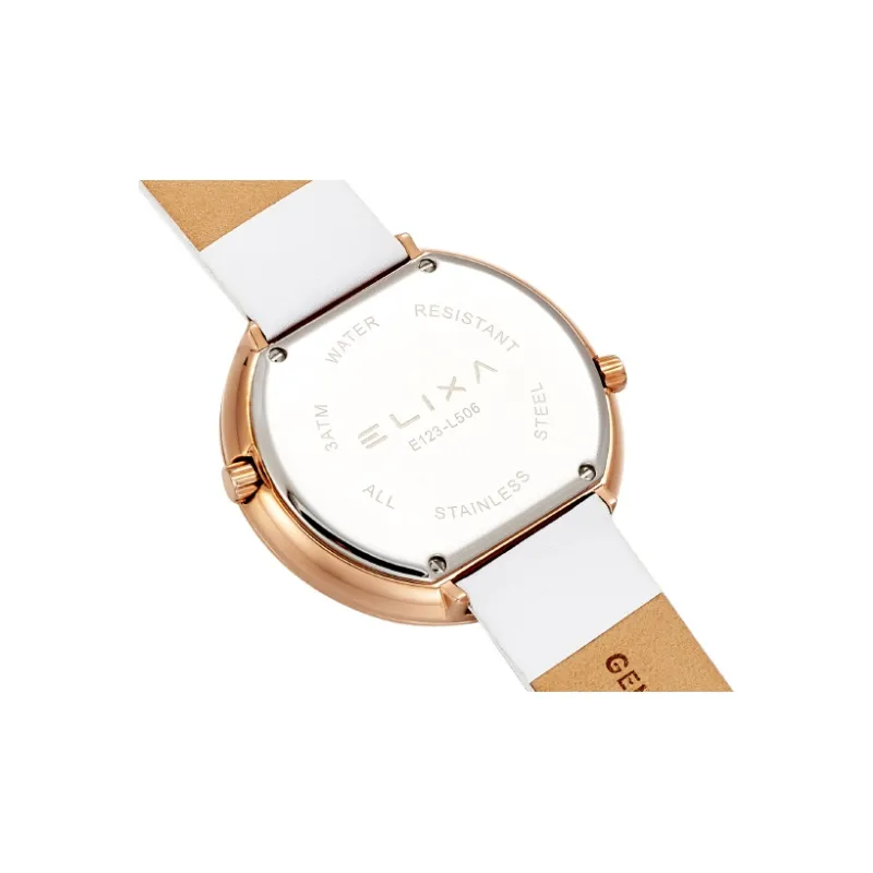 Elixa Кварцевый механизм Женские часы 41 мм Белый циферблат Корпус из нержавеющей стали Естественная кожа Ремешок E123 L506