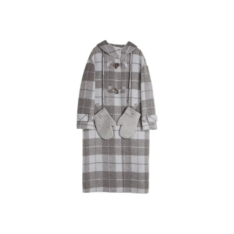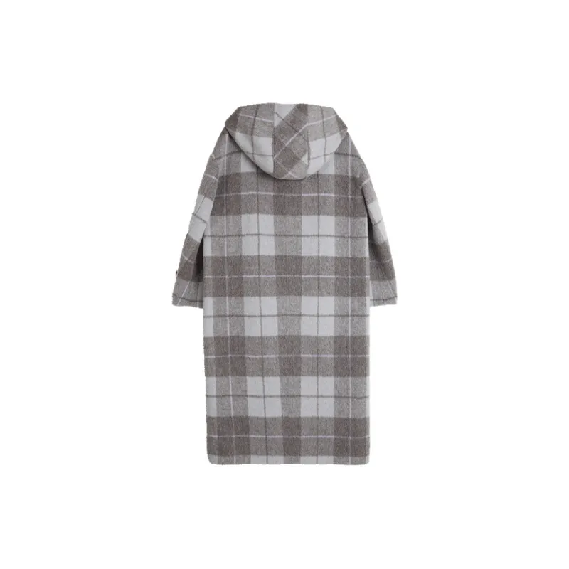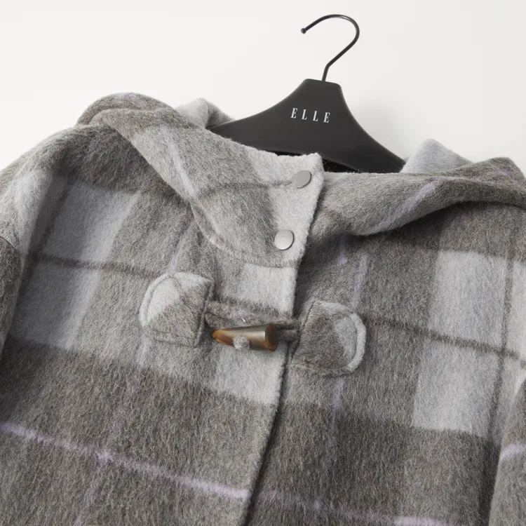 ELLE Серое Клетчатое Женское Пальто