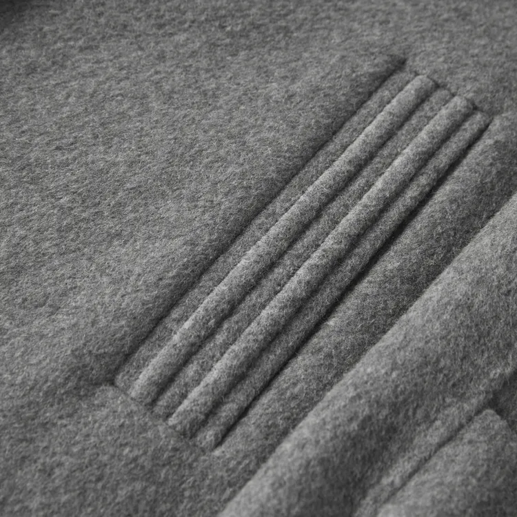 Ткань: 81% овечья шерсть, 9,7% верблюжья шерсть, 9,3% шелк тутового шелкопряда Отделка: 70,1% овечья шерсть, 27,4% полиэстер, 2,5% другие волокна