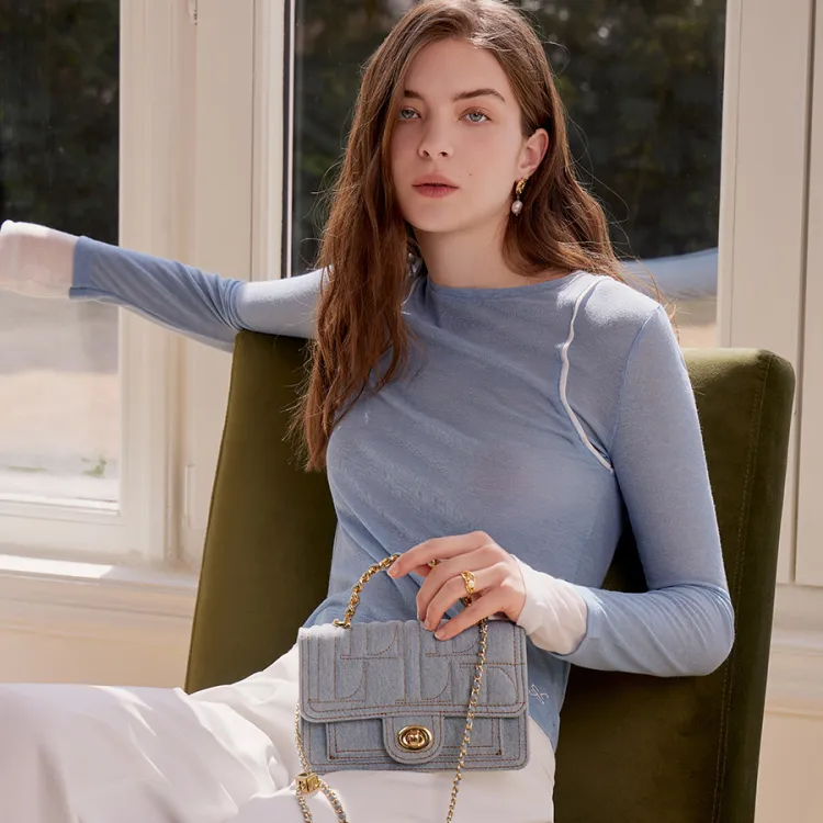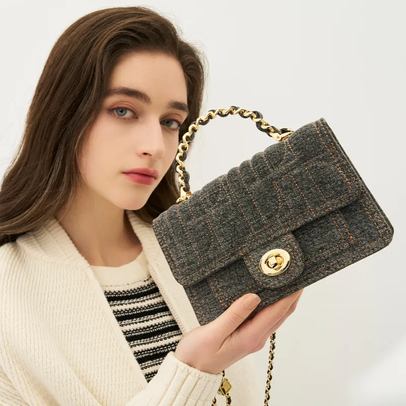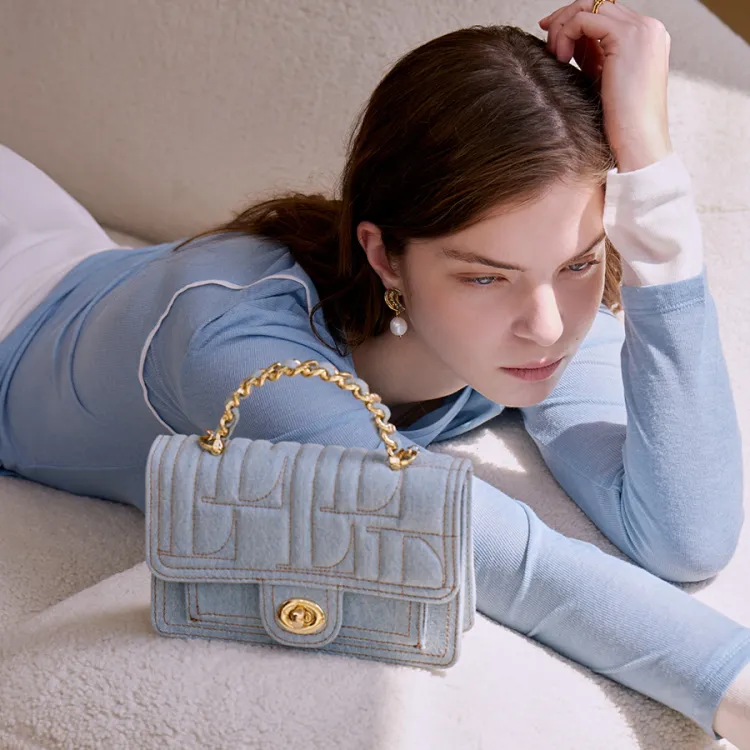 ELLE Ткань Маленькая Квадратная Сумка Сумка Стандартная Женская Синяя Черная