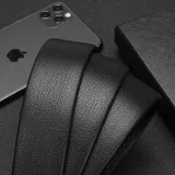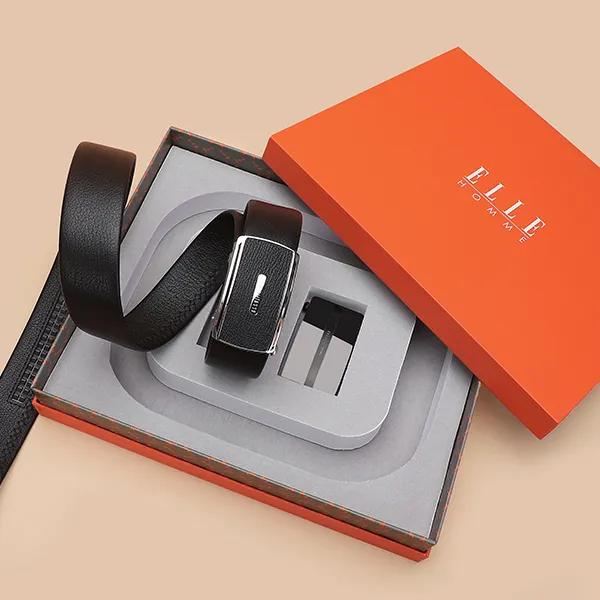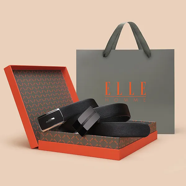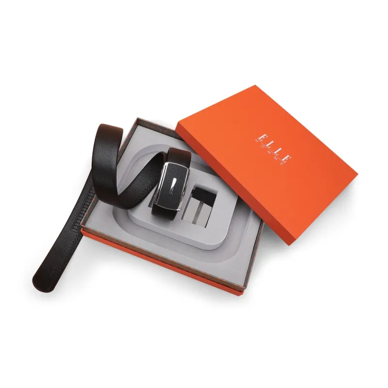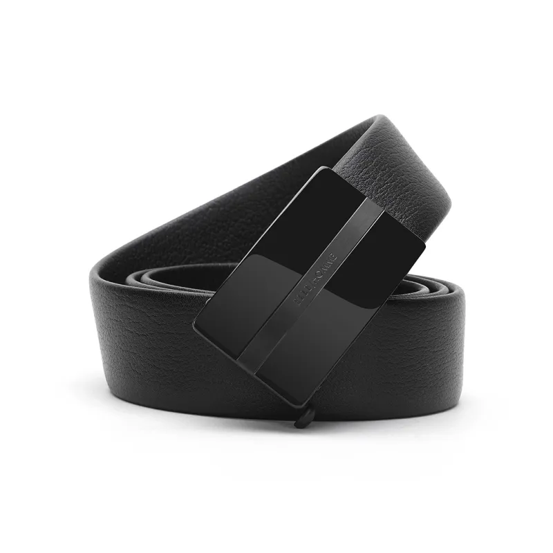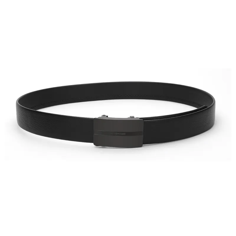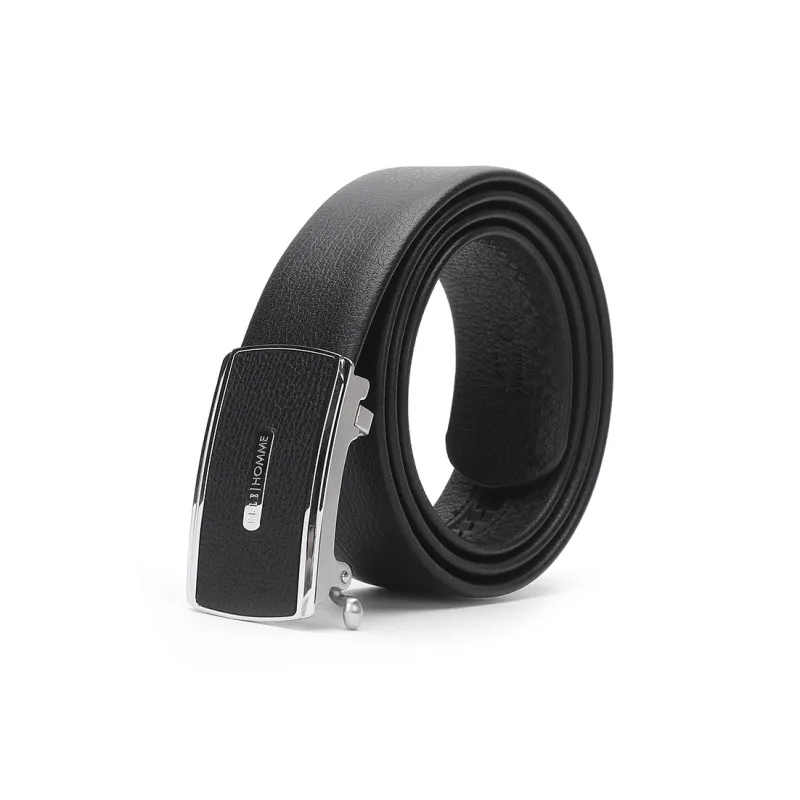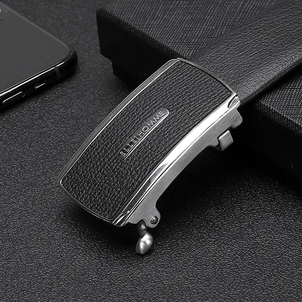 ELLE HOMME Автоматическая застежка стальная пряжка двойная голова коробка ремни из крупнозернистой текстуры мужская кожа черный ширина 3,7 см