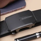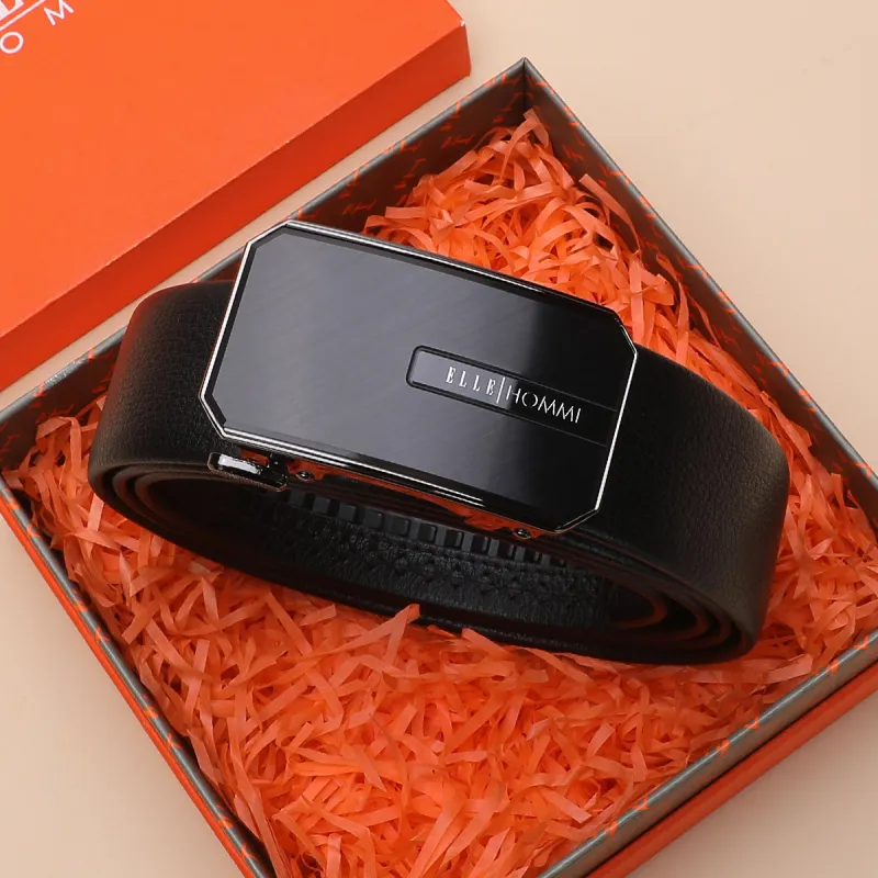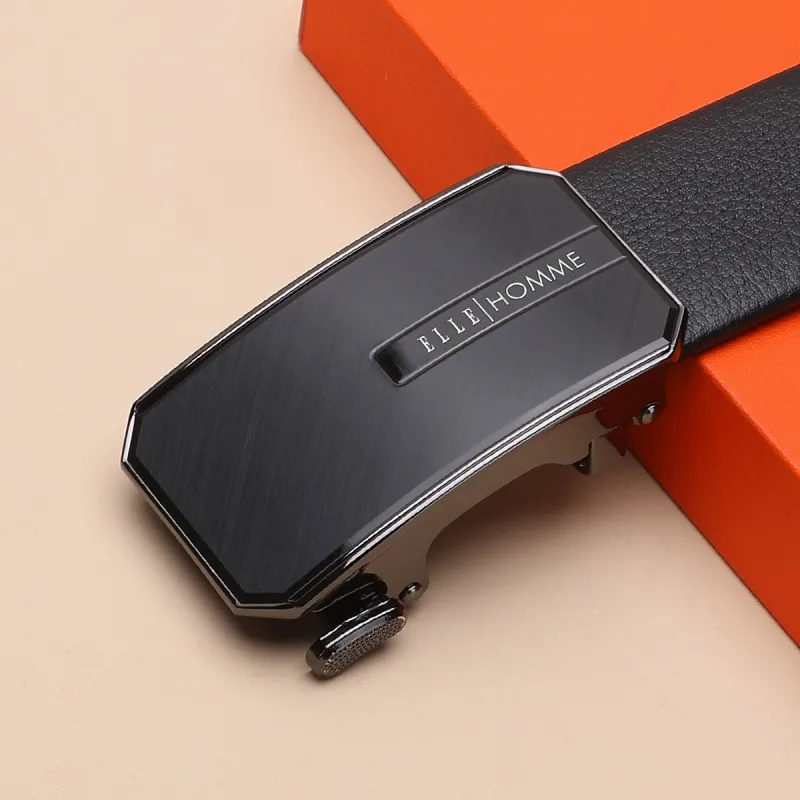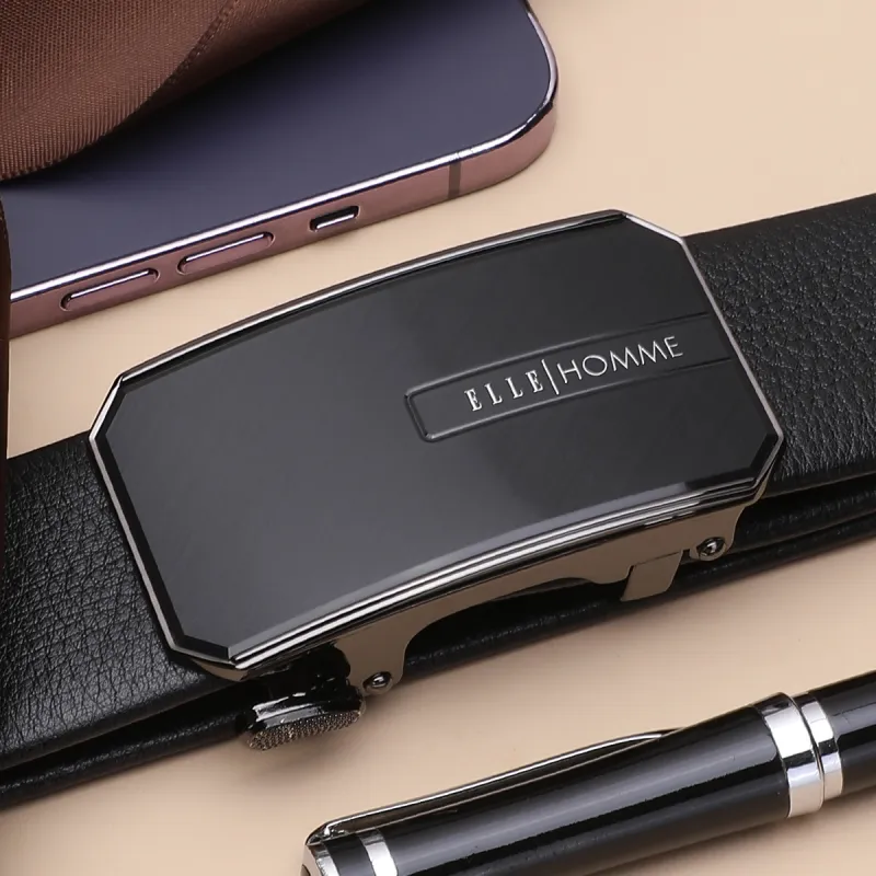 ELLE HOMME Мужской Автоматический Застежка Натуральная Кожа Модный Ремешок из Коровьей Кожи Мужской Черный Ширина 3,7 см
