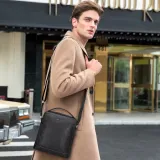 ELLE HOMME Растительное дубление крупнозернистая текстура коровья кожа сумка на плечо сумка через плечо мужская черная
