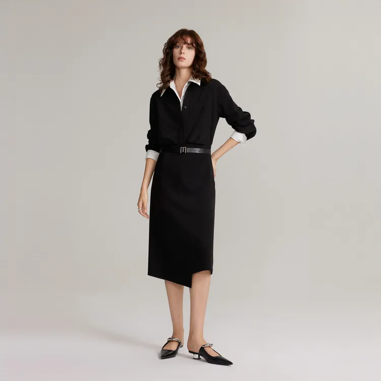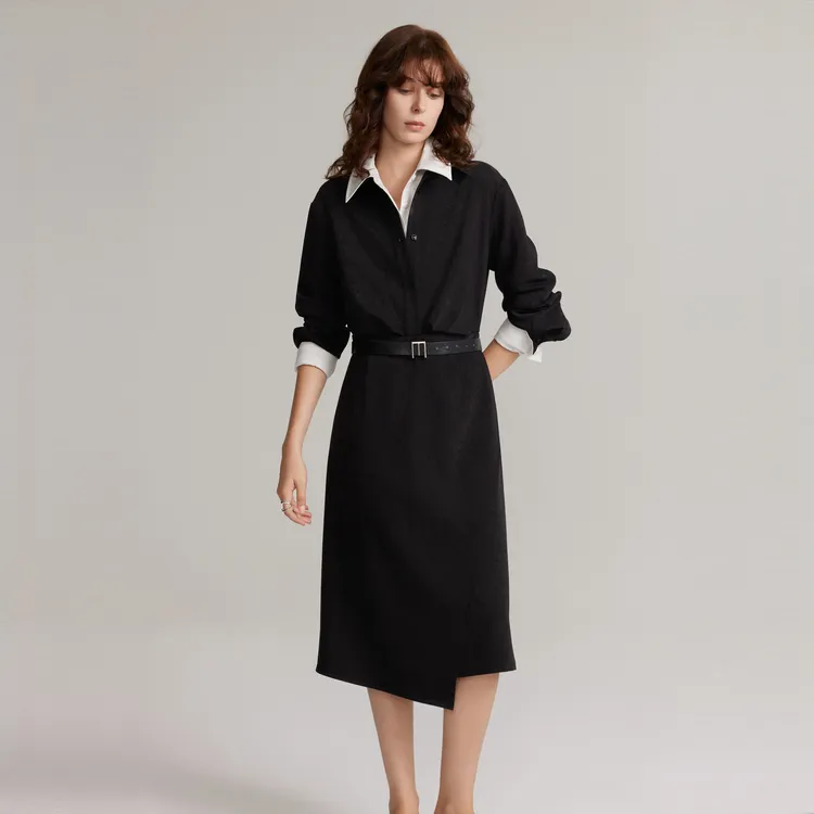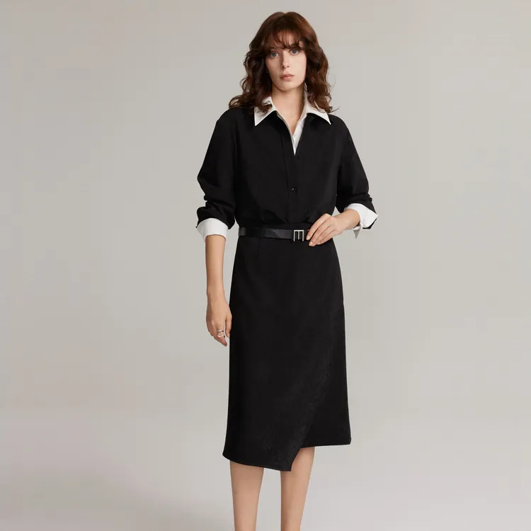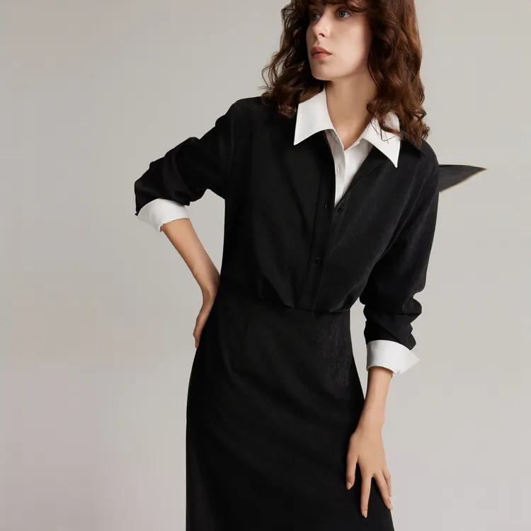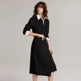 ELLE Длинное платье с длинными рукавами женское черное