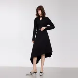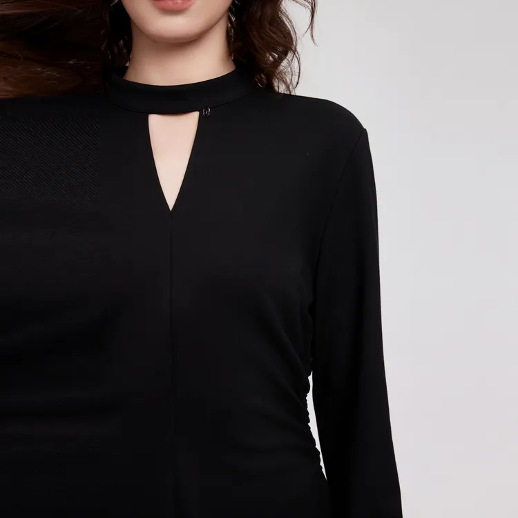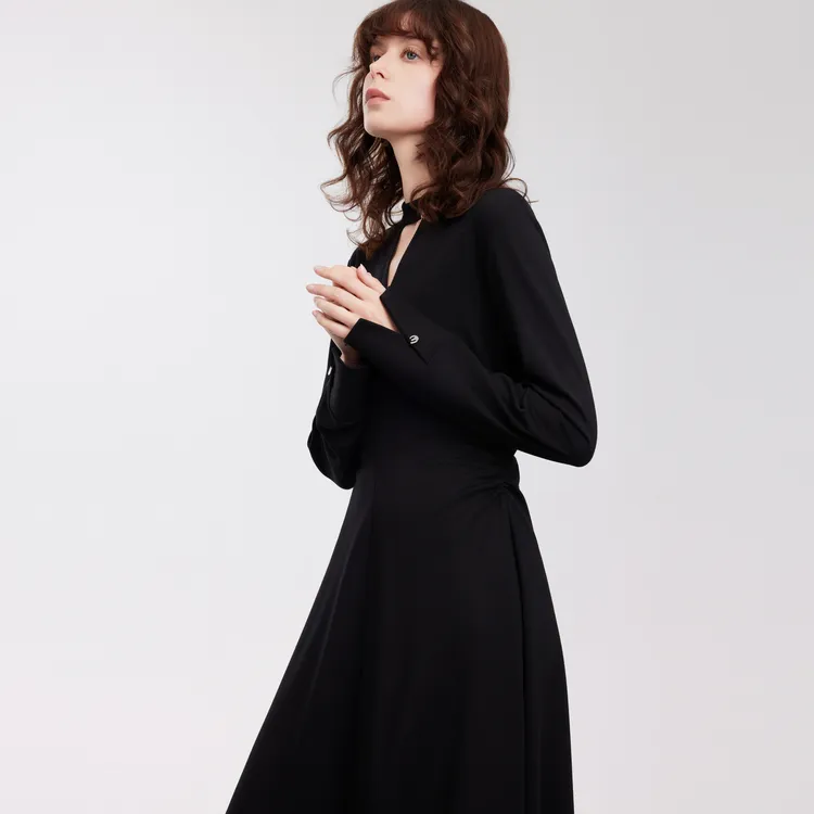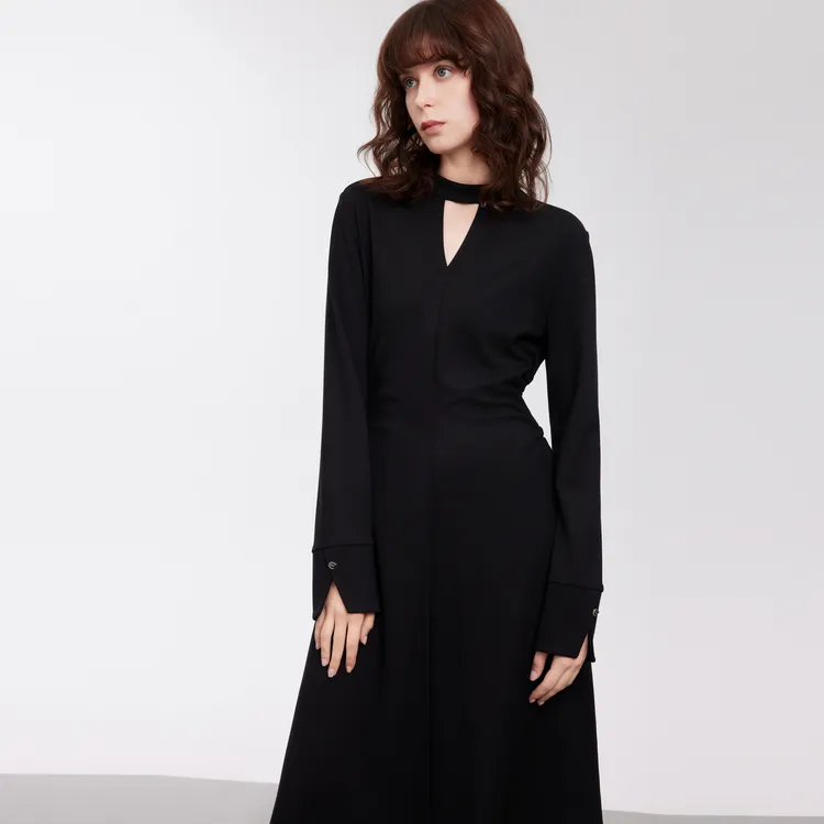 ELLE Длинное платье с длинными рукавами женское черное