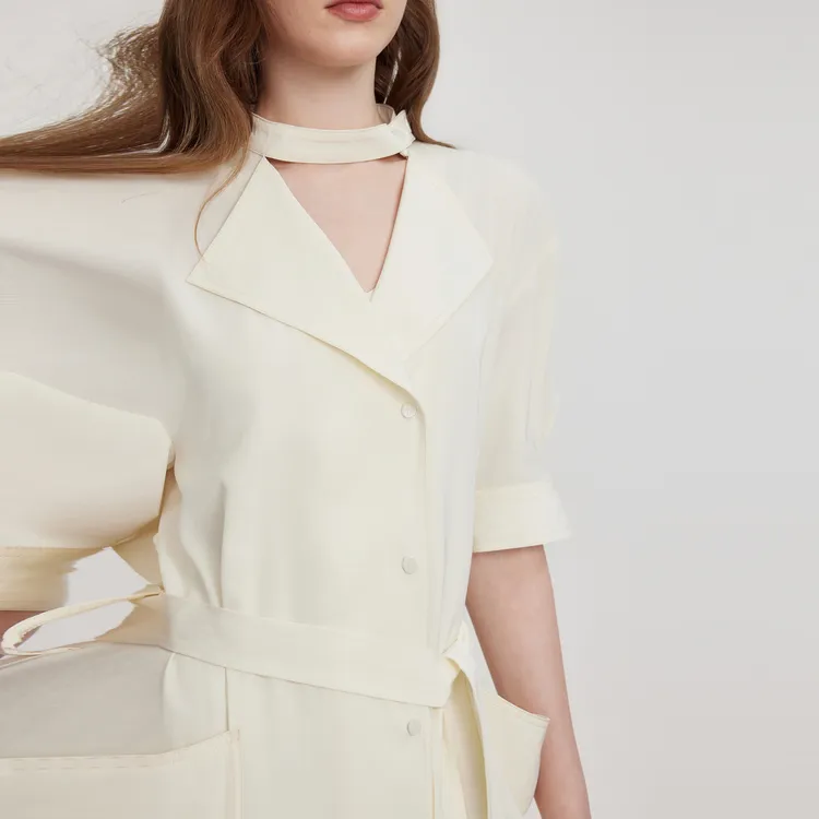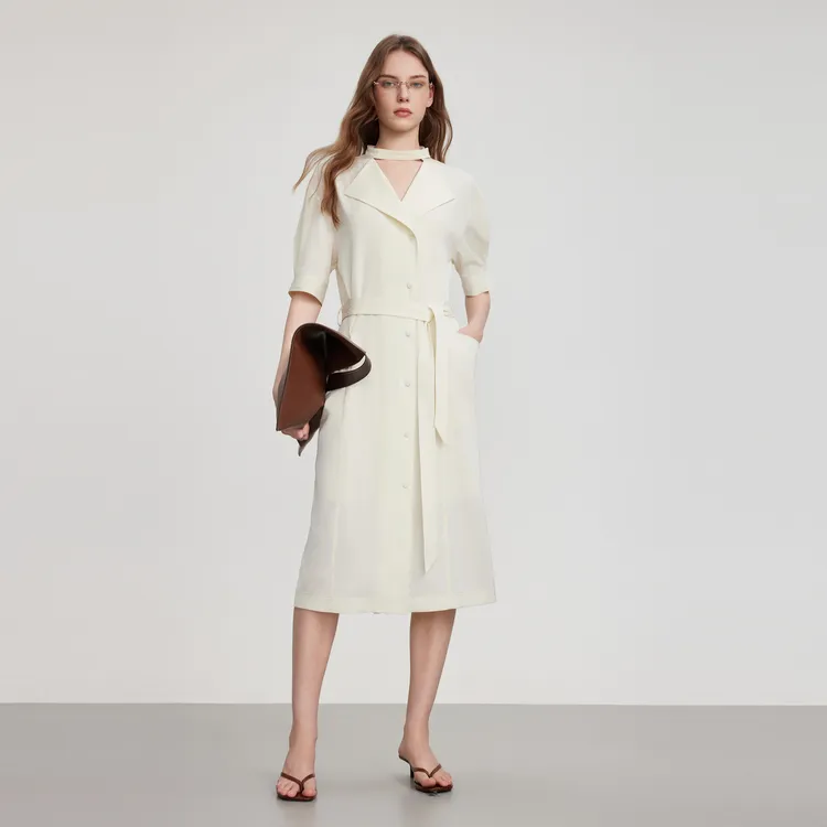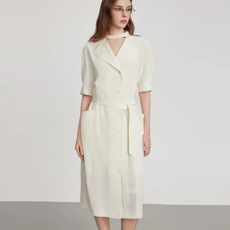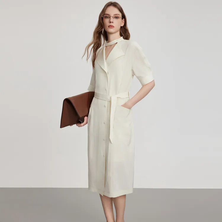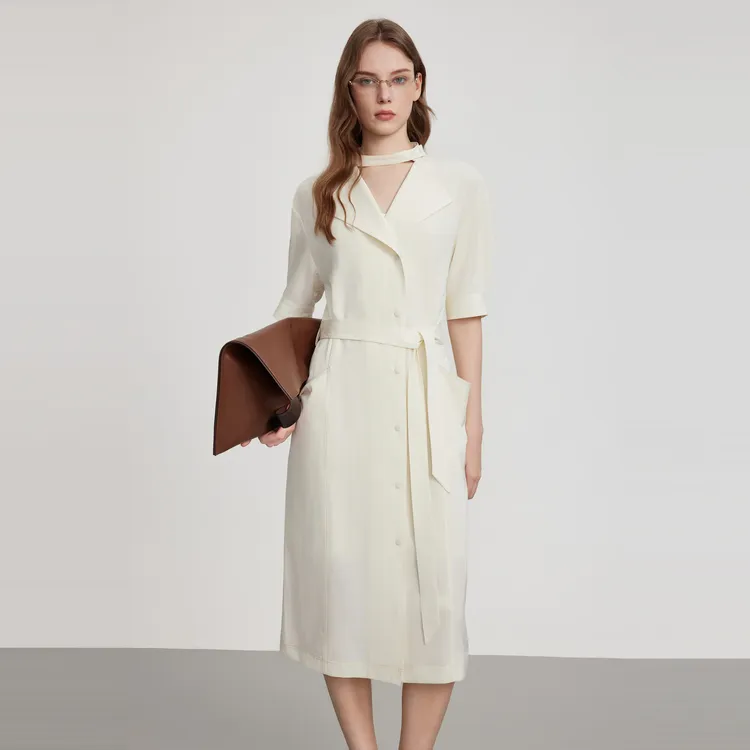 ELLE Короткий рукав Платье Женское Экрю