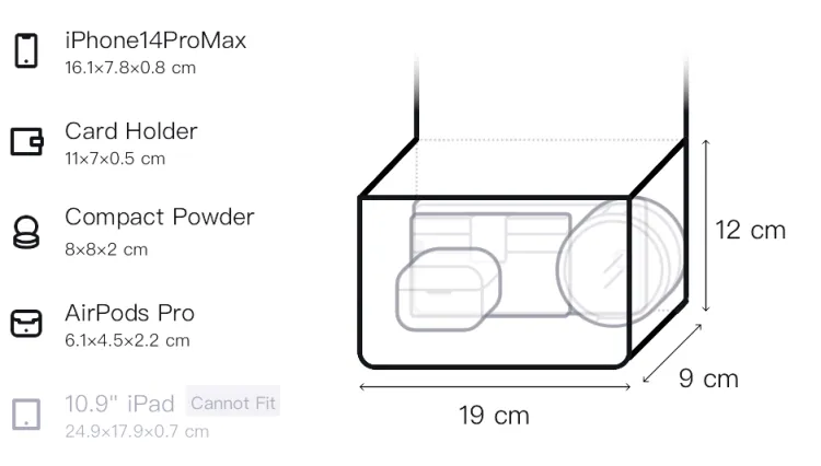 Д19*Ш9*В12см
