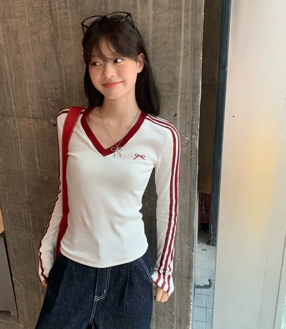 EMDPN Полосы V-образный вырез Облегающий крой Утягивающий внутренний топ Женские