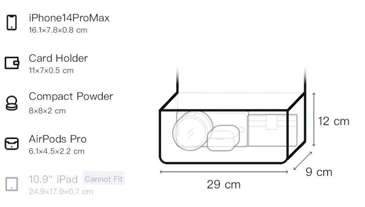 Д29*Ш9*В12см
