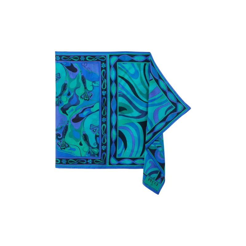 EMILIO PUCCI Шелковые Хлопково-шелковые Шарфы Женские Синие