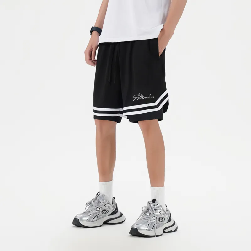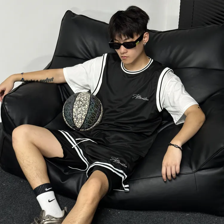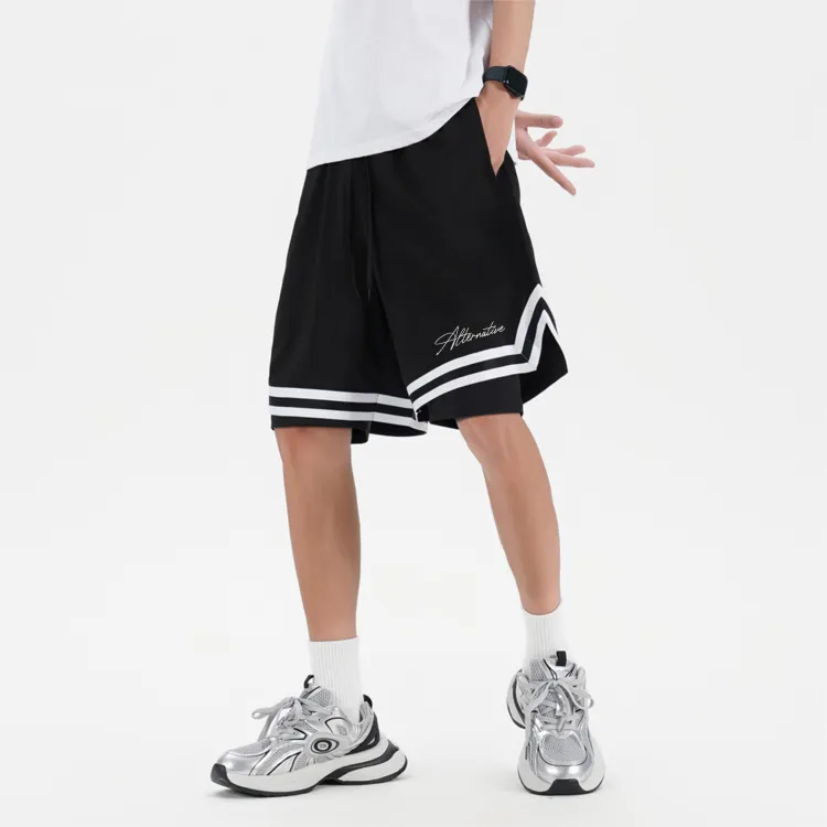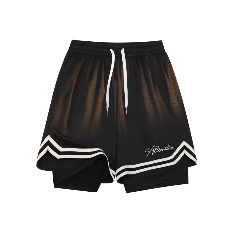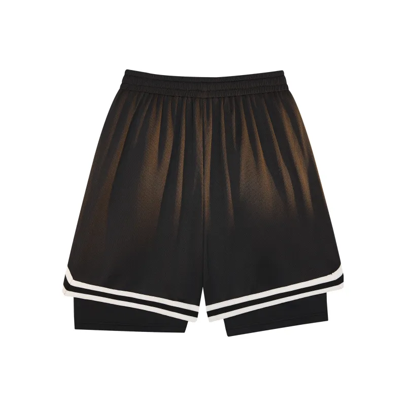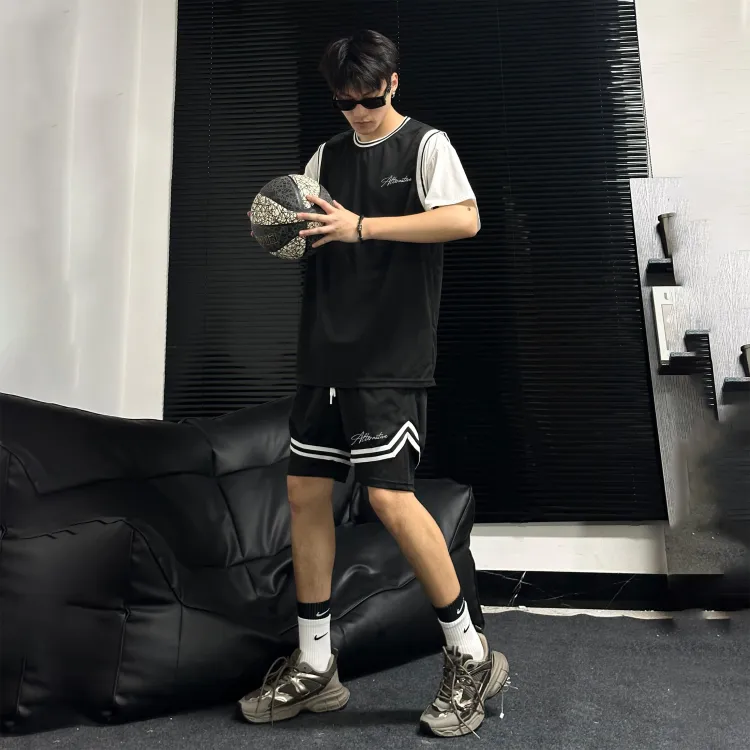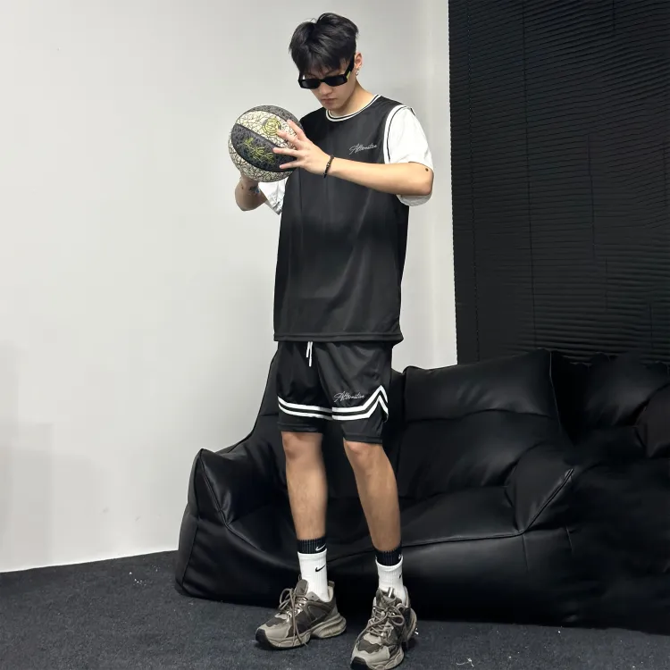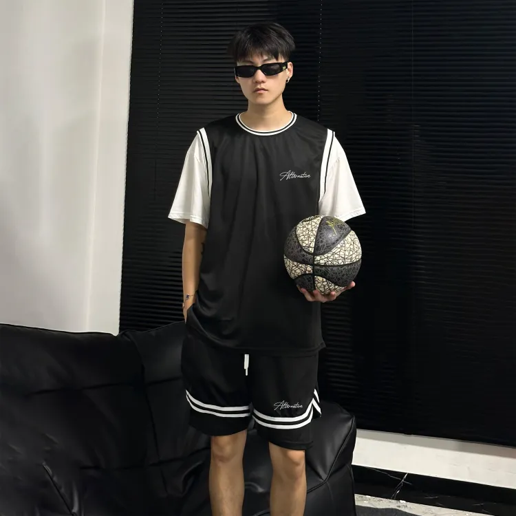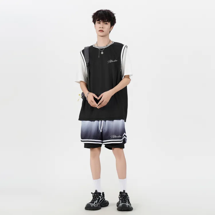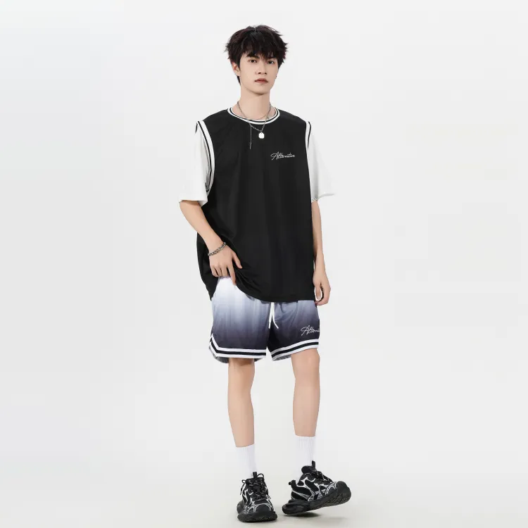 Черная рубашка с коротким рукавом + черные шорты с градиентом