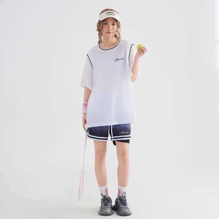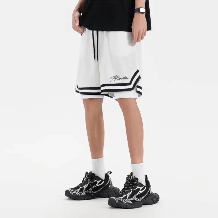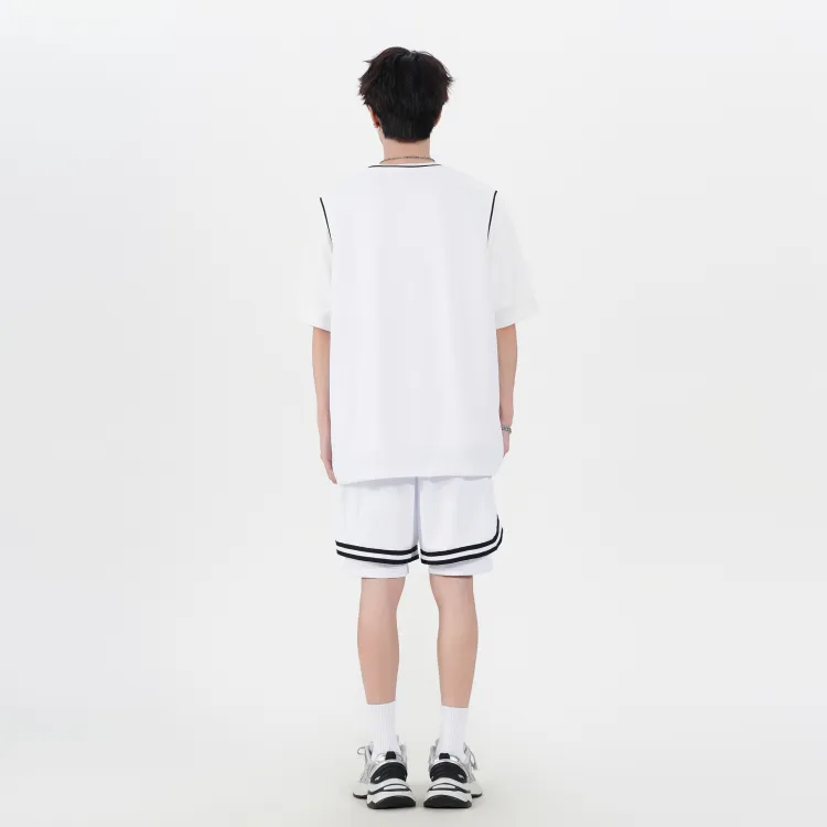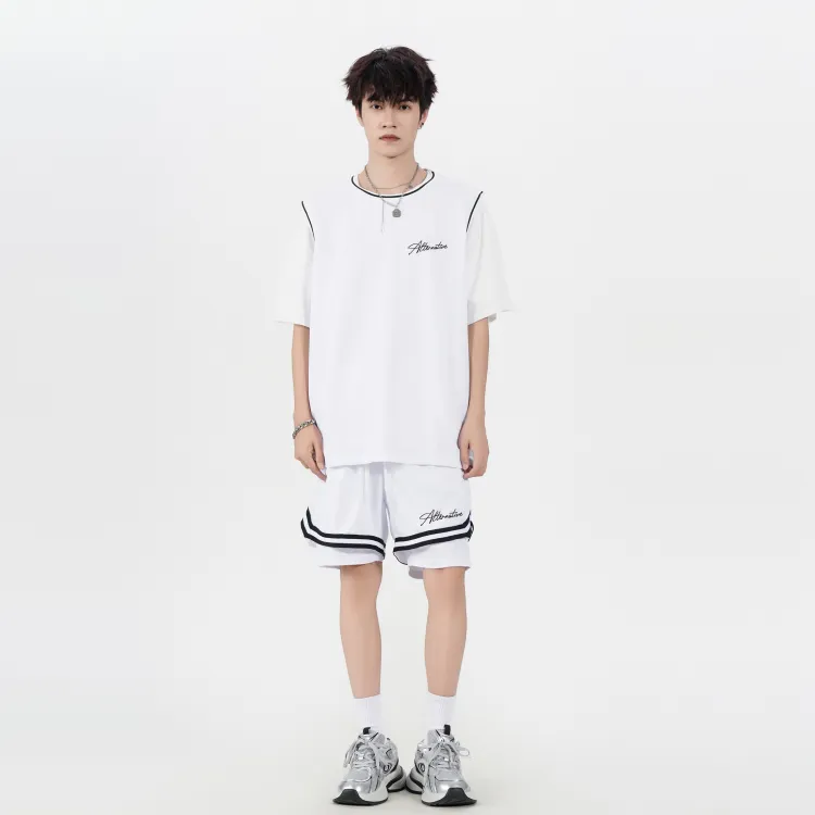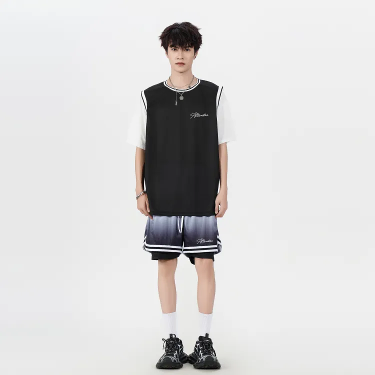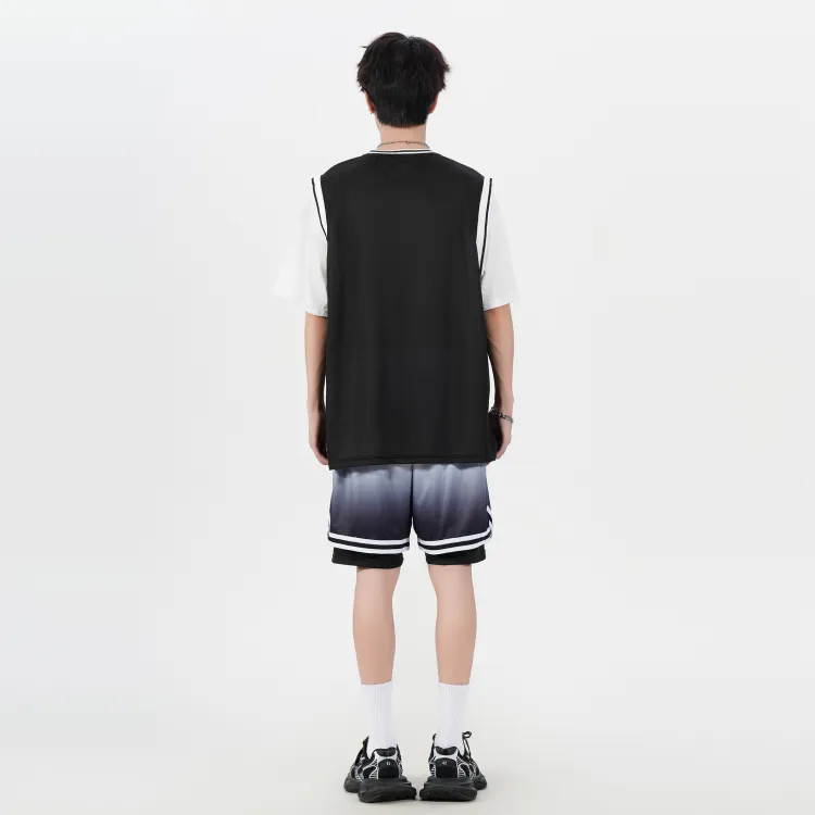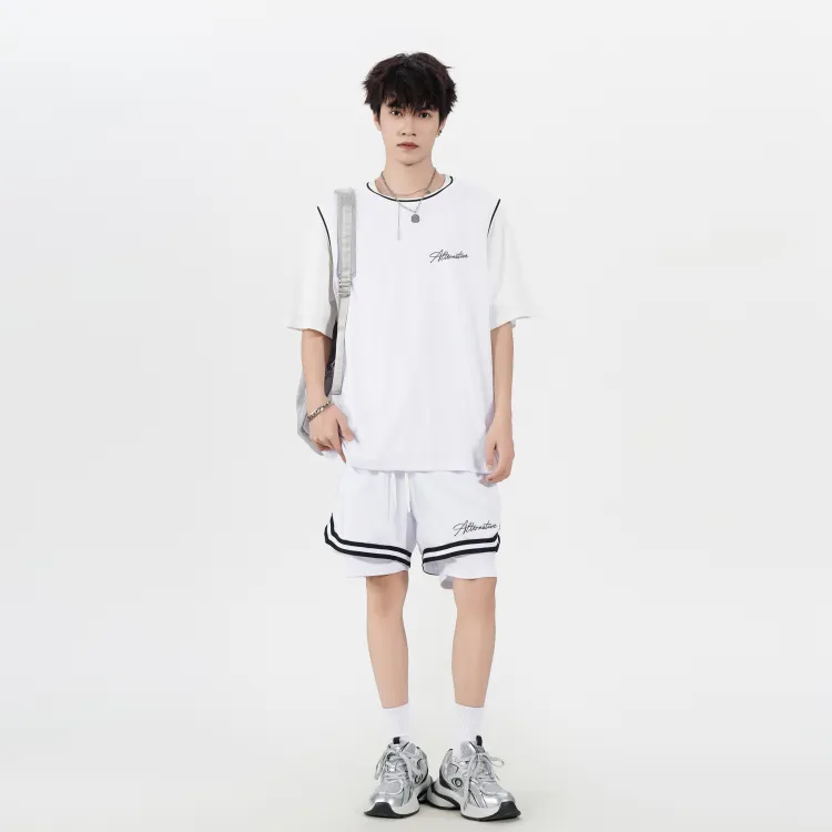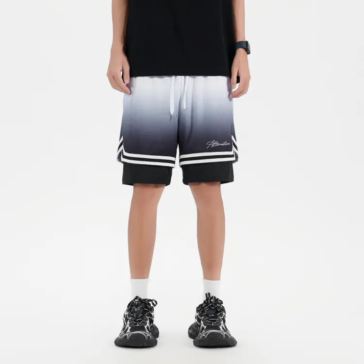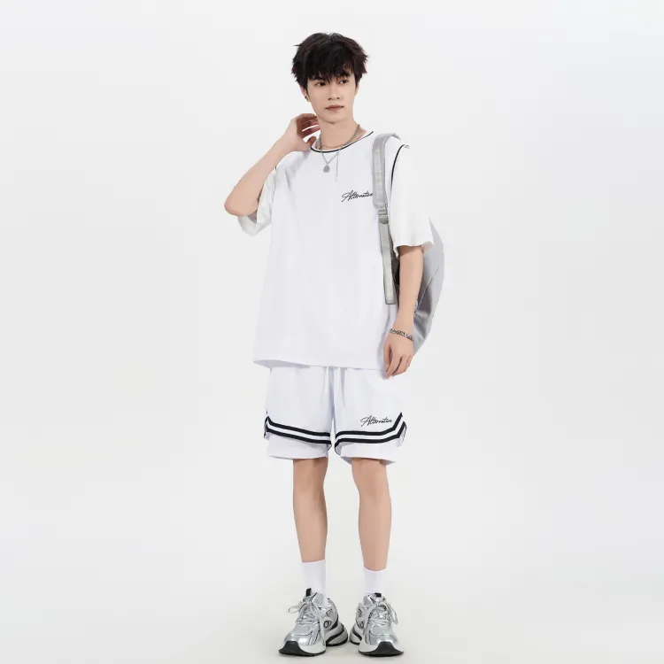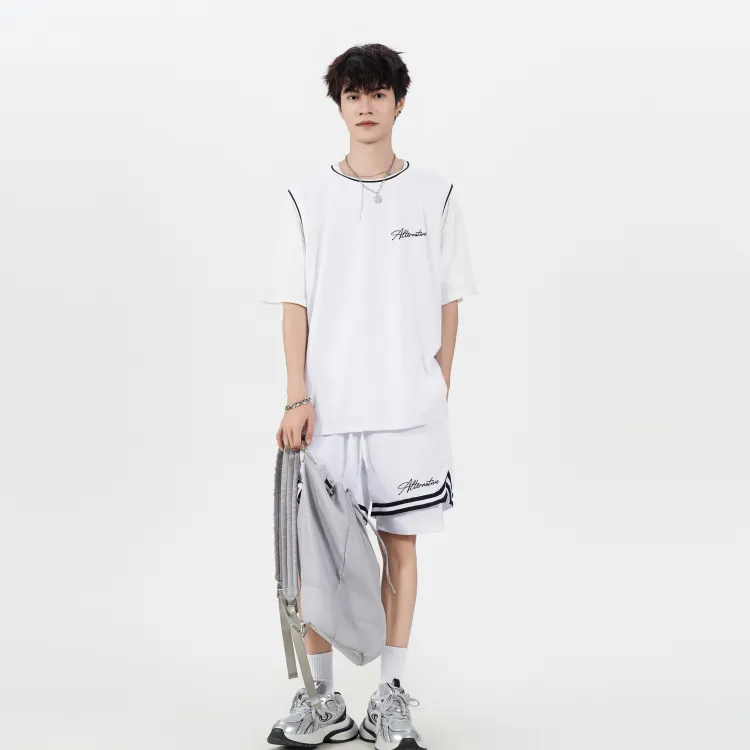Белая рубашка с короткими рукавами + черные шорты с градиентом