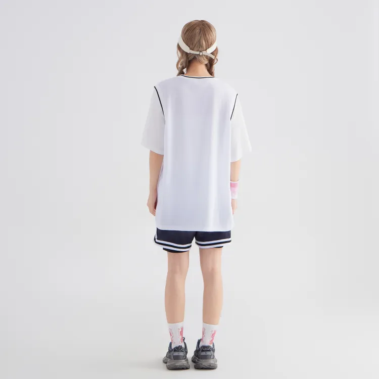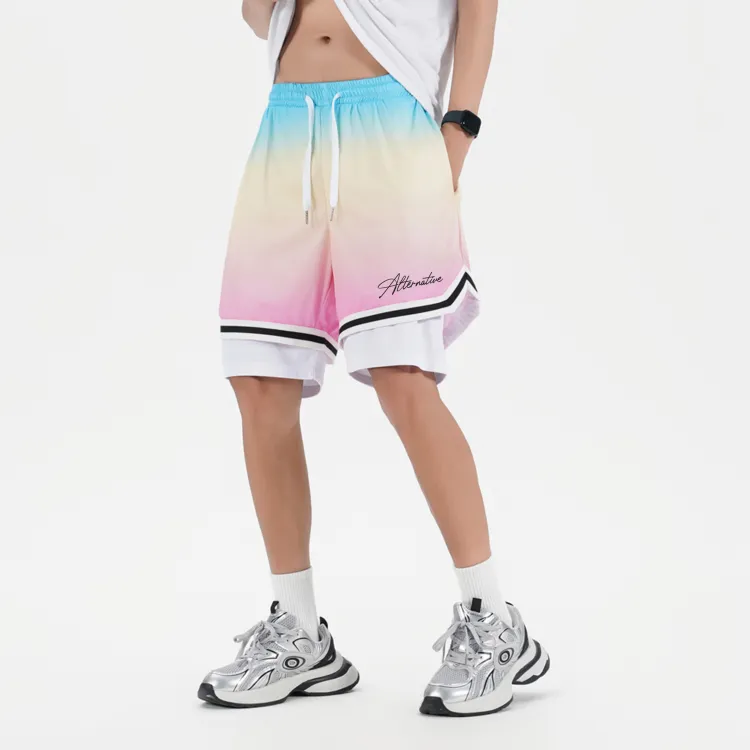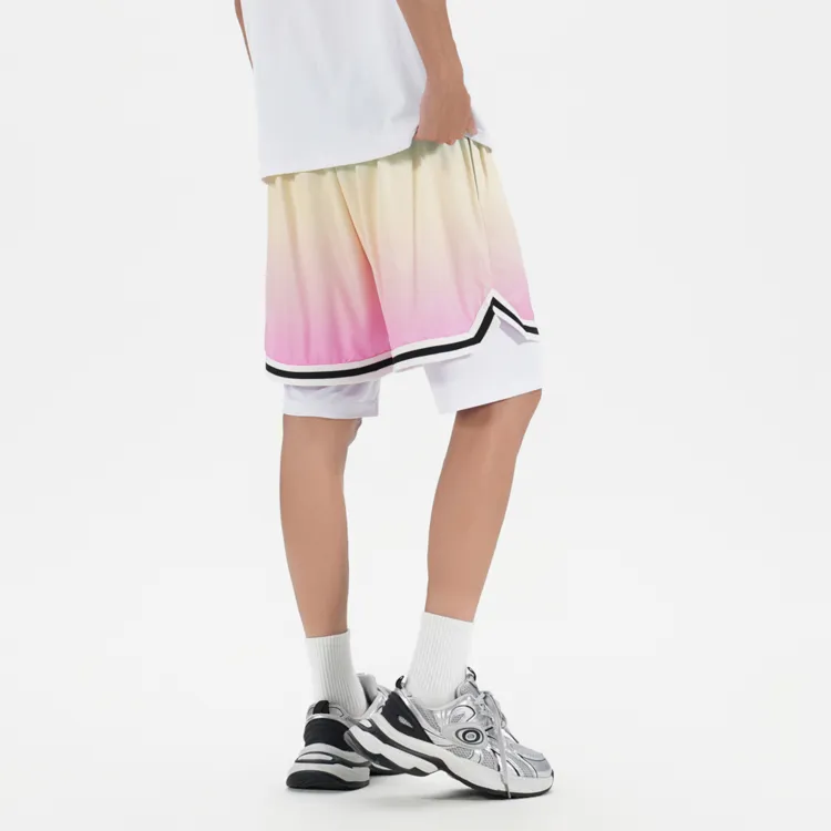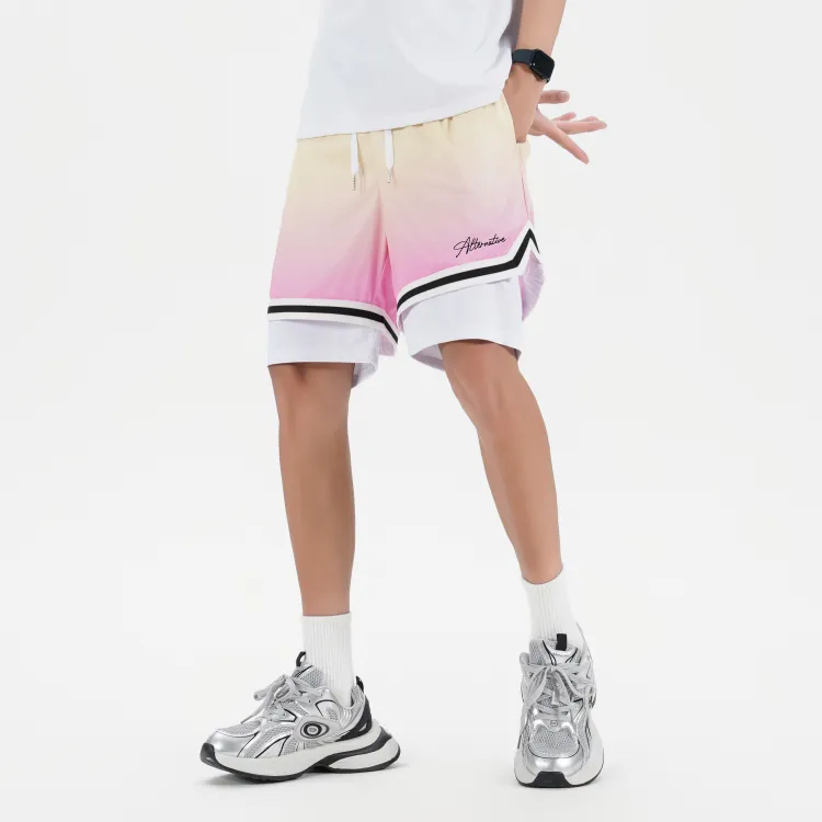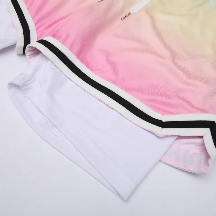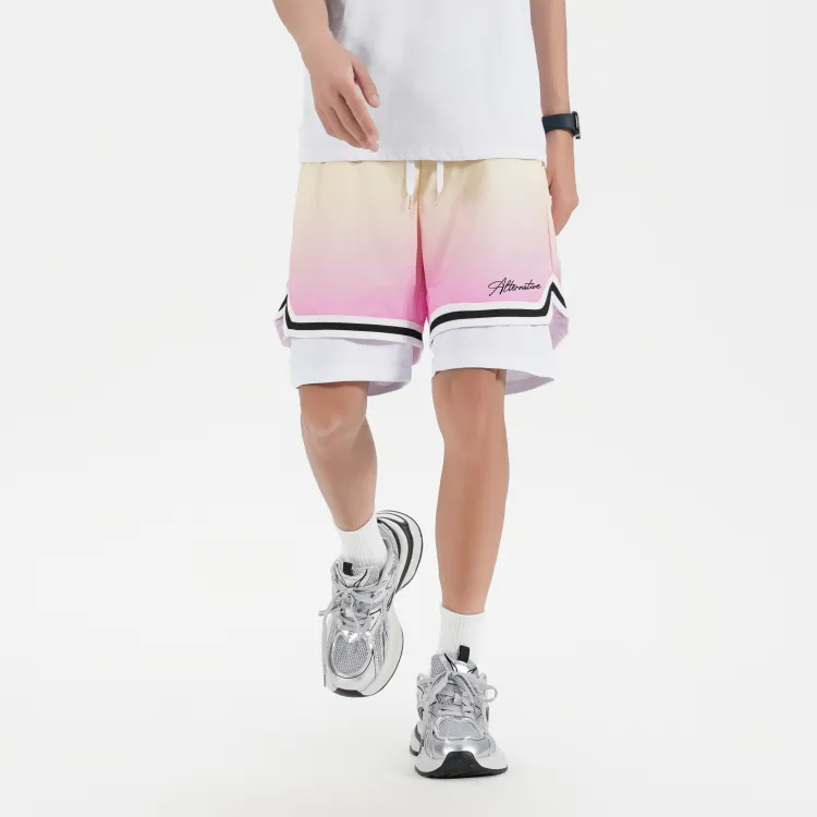 Белая рубашка с короткими рукавами + градиентные розовые шорты