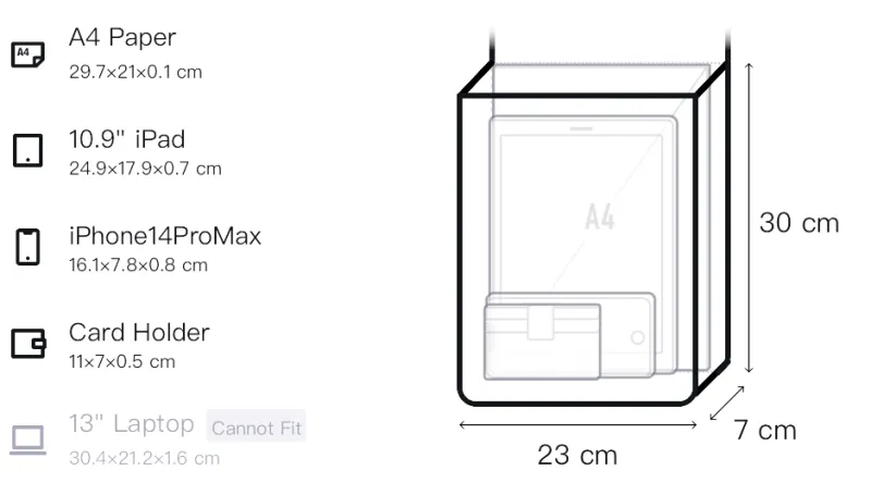 Длина 23 см * Ширина 7 см * Высота 30 см