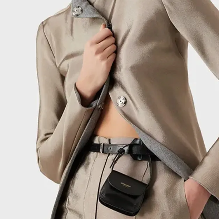EMPORIO ARMANI Значок кнопка застежка плавный механизм ремень из коровьей кожи женский черный 4 5 см
