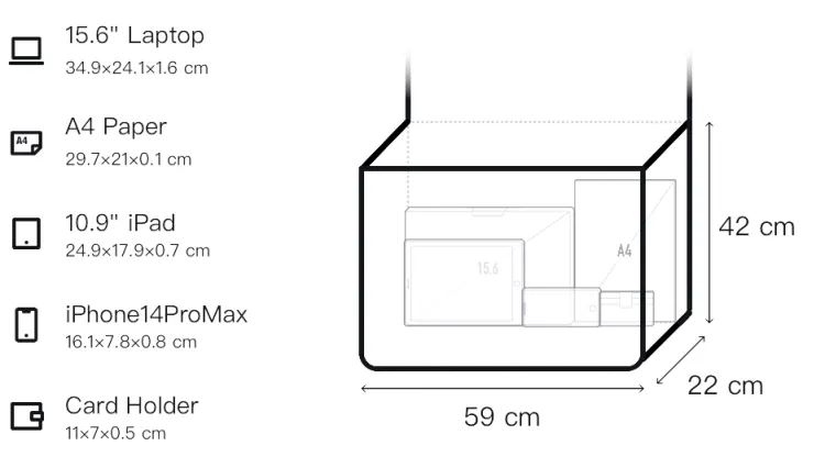 Длина 59 см * Ширина 22 см * Высота 42 см
