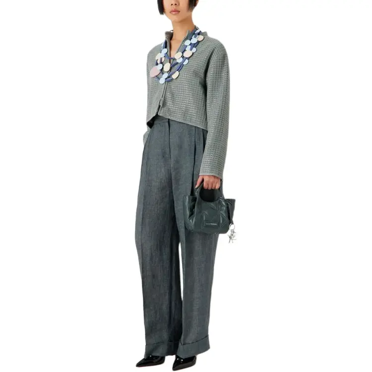 EMPORIO ARMANI SS24 Кожа Куртка Женская Серого цвета