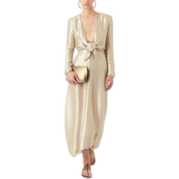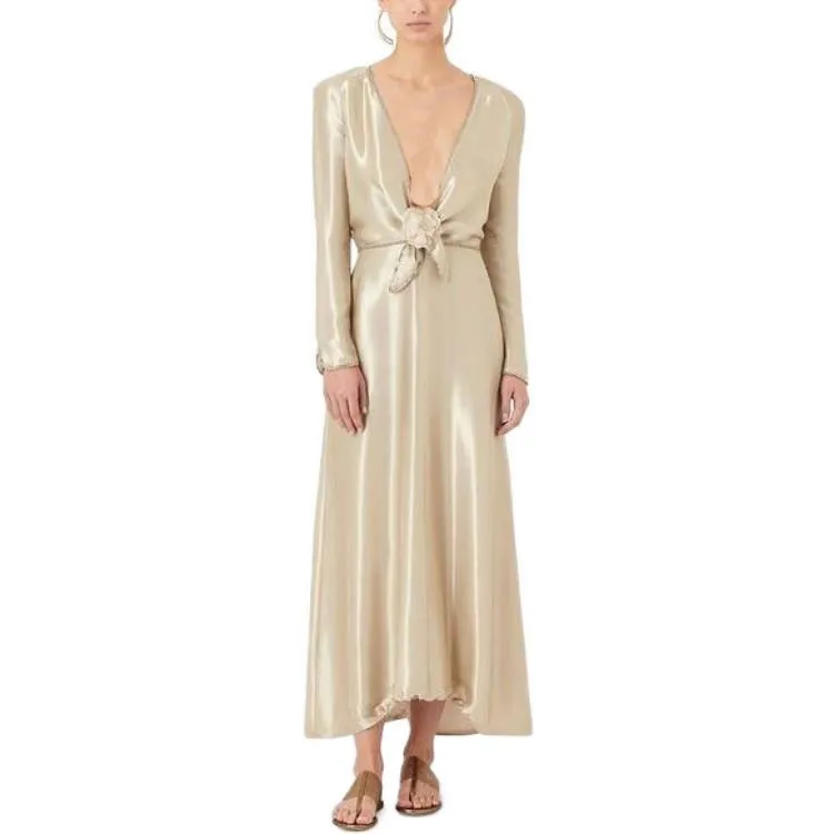 GIORGIO ARMANI Длинное платье с длинными рукавами женское золотое