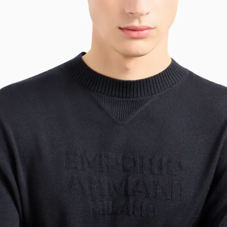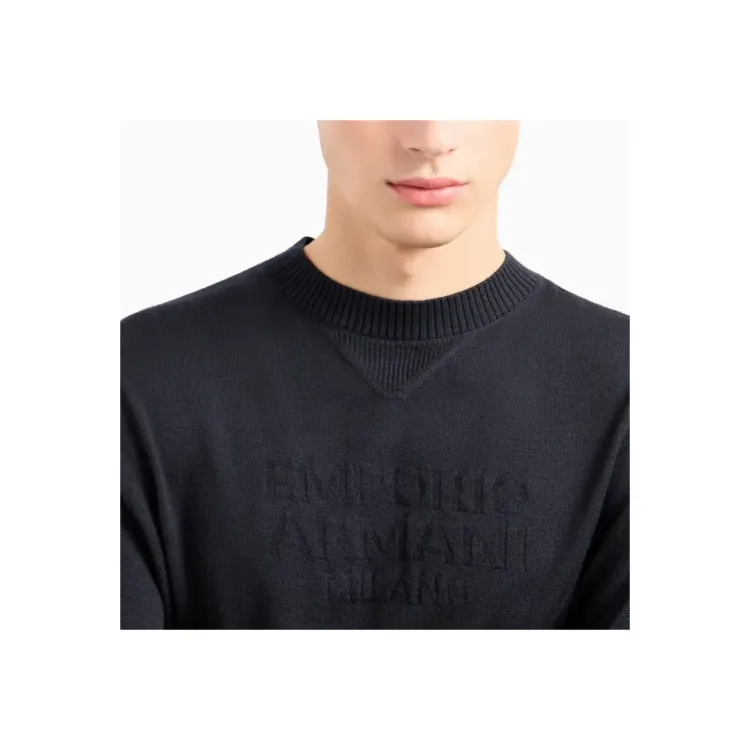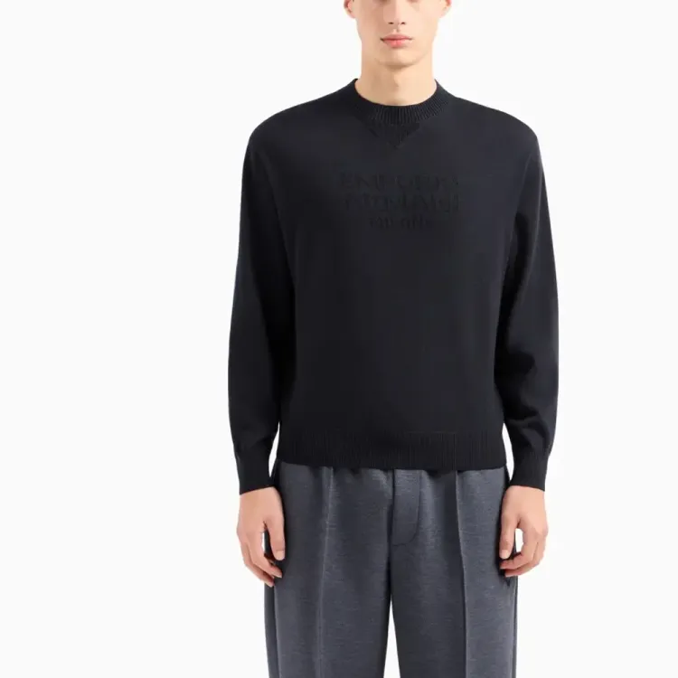 EMPORIO ARMANI Длинный рукав круглый вырез без плеч пуловер свитер трикотаж унисекс морской синий