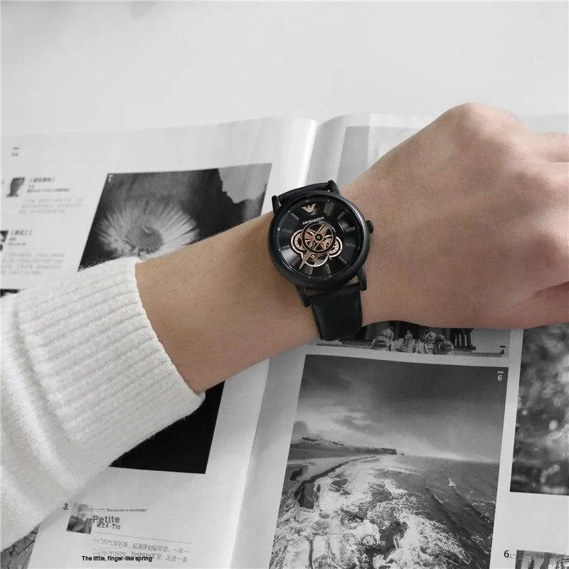 EMPORIO ARMANI LUIGI Механические часы натуральная кожа ремень черный циферблат мужской
