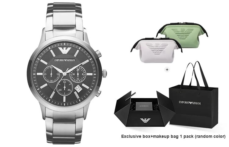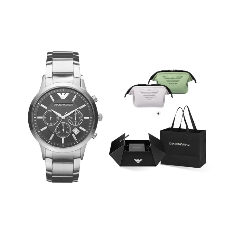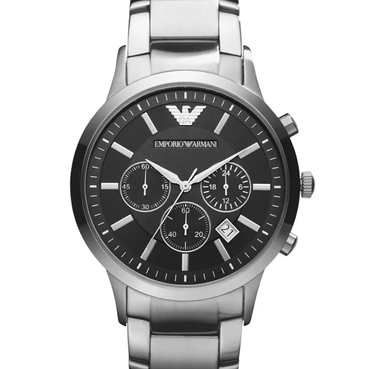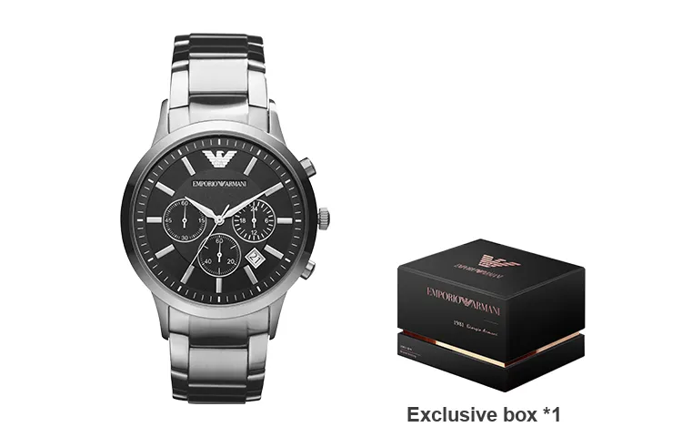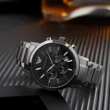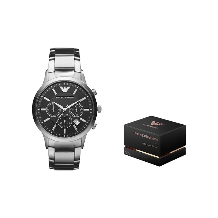 EMPORIO ARMANI Черный Warrior Часы Кварцевый механизм Ремешок из нержавеющей стали Черный циферблат Мужские часы