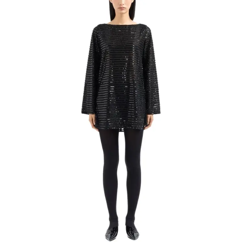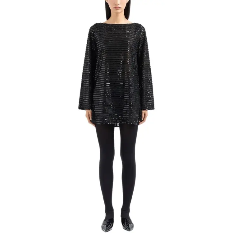 EMPORIO ARMANI Длинное платье с длинными рукавами женское черное