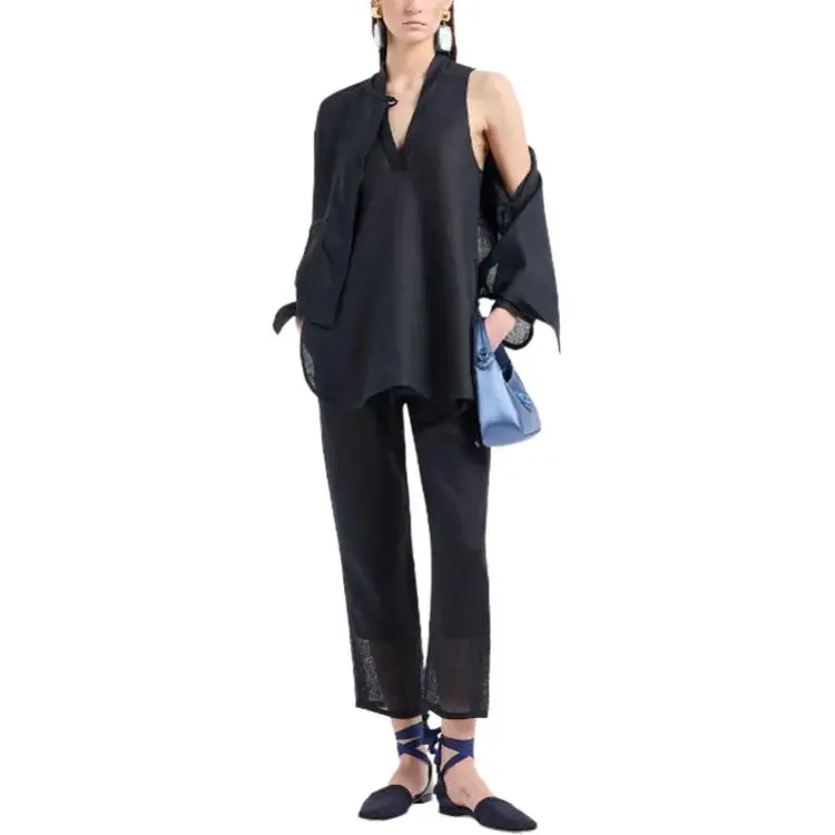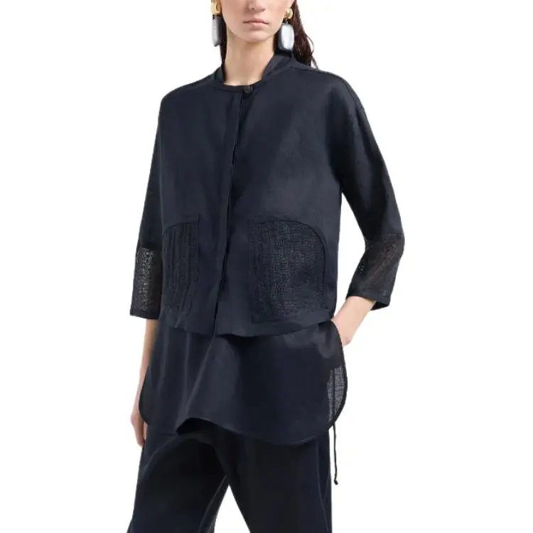 EMPORIO ARMANI SS24 Рубашка Женская Морской Синий
