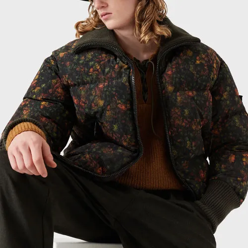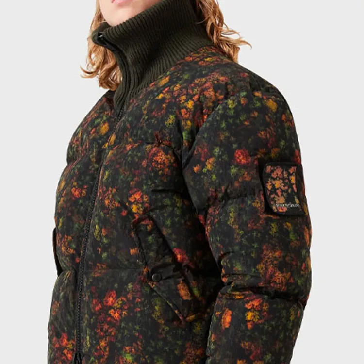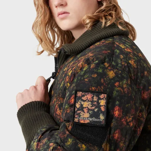 EMPORIO ARMANI Растение и Цветочный Печатный Воротник-стойка Пуховик Мужской Зеленый