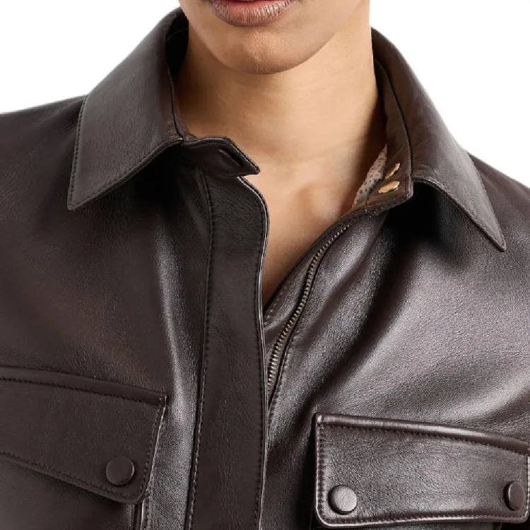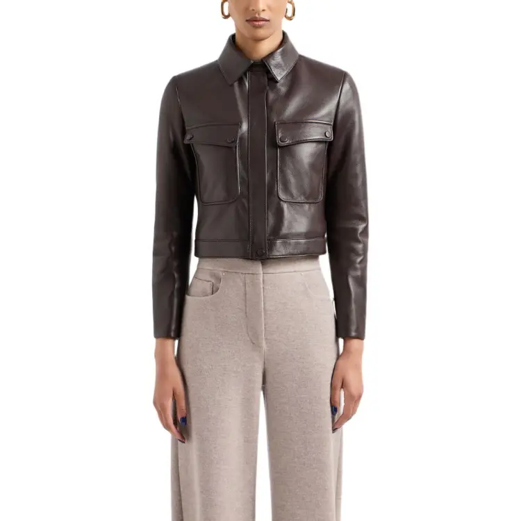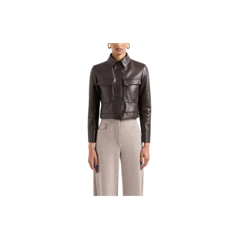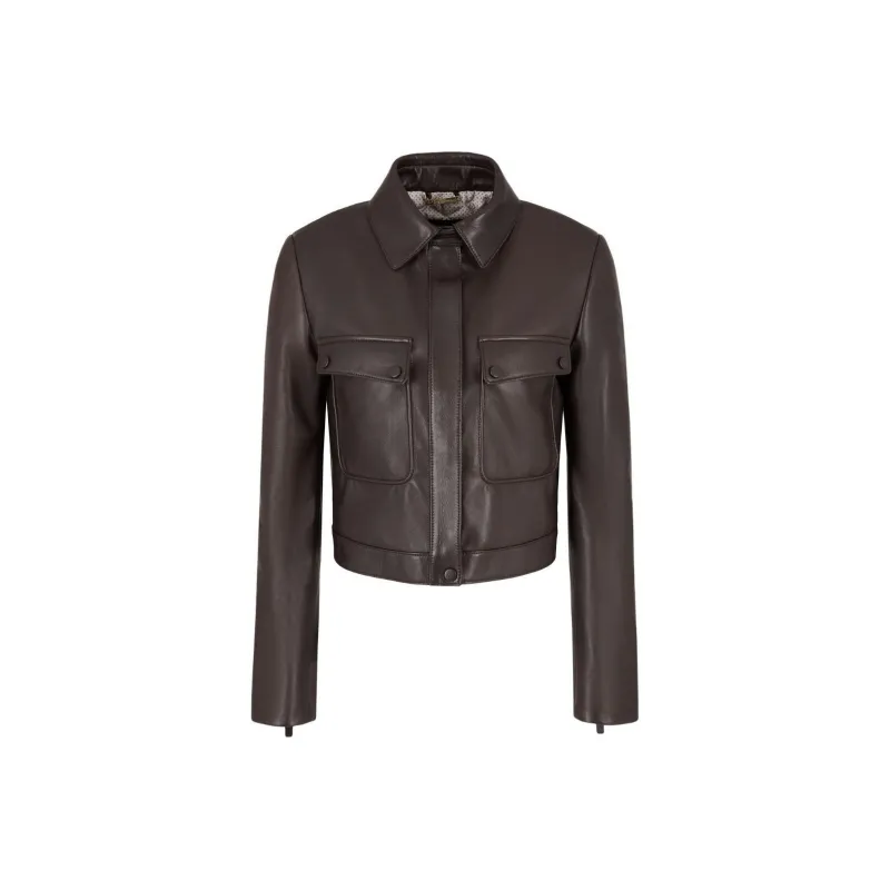 AMANI SS24 Кожаная куртка женская темно-коричневая