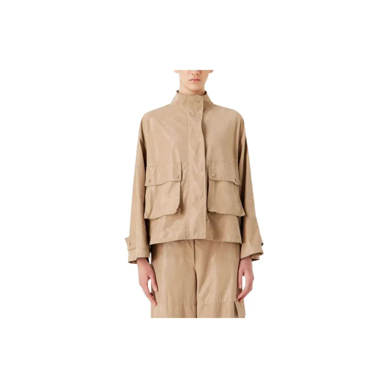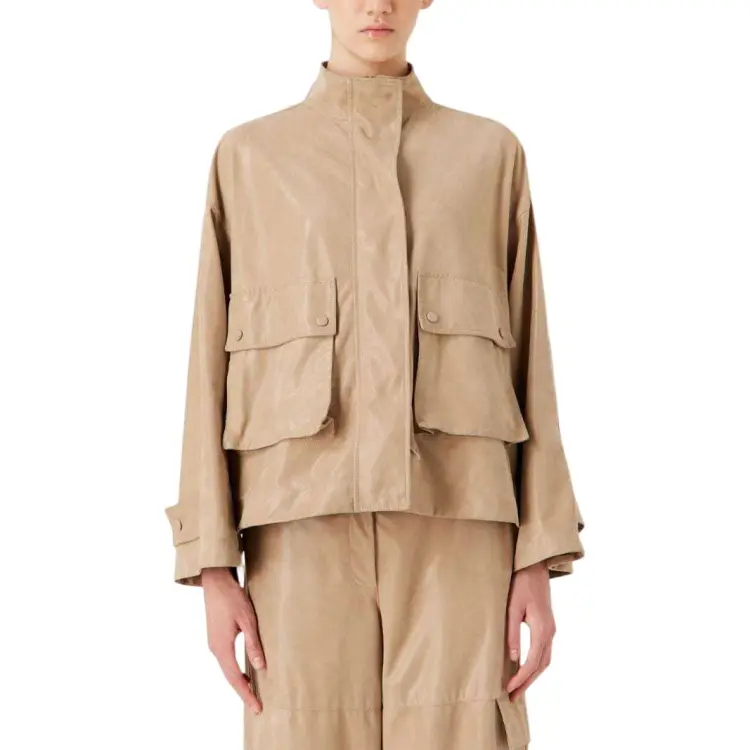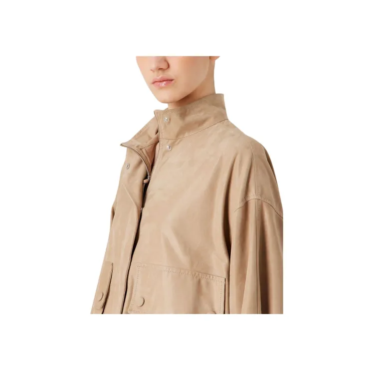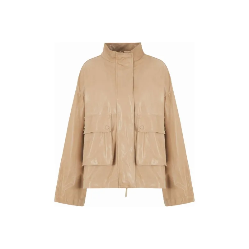 EMPORIO ARMANI SS24 Кожаная куртка женская цвет верблюжий коричневый